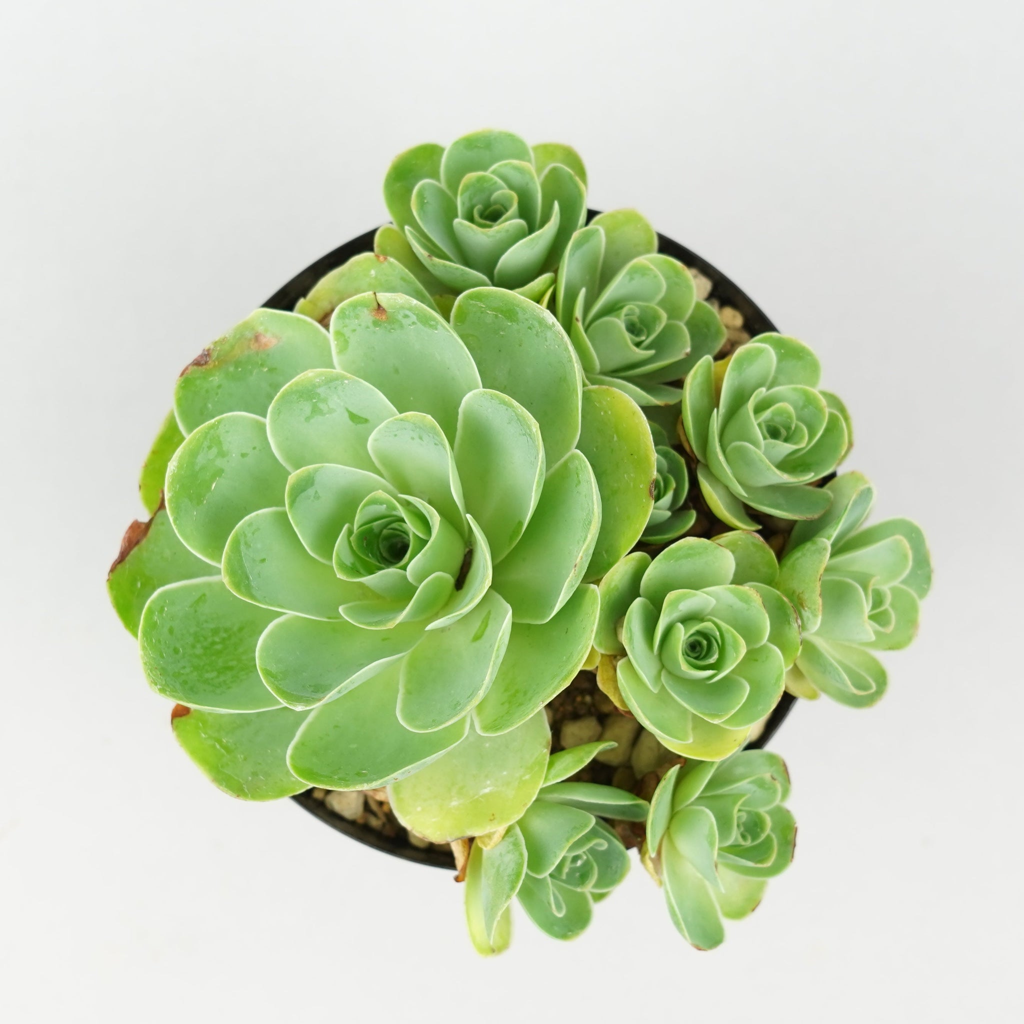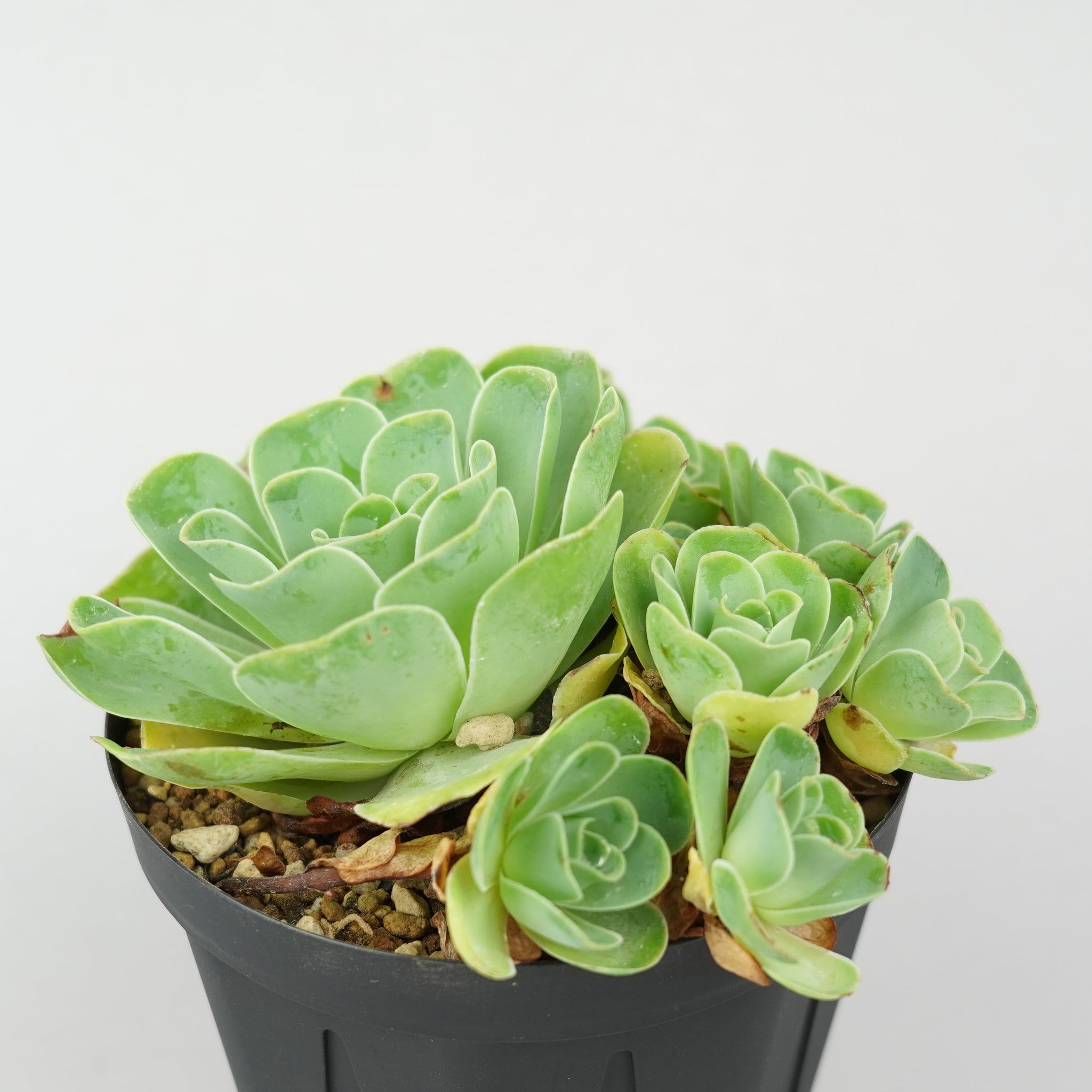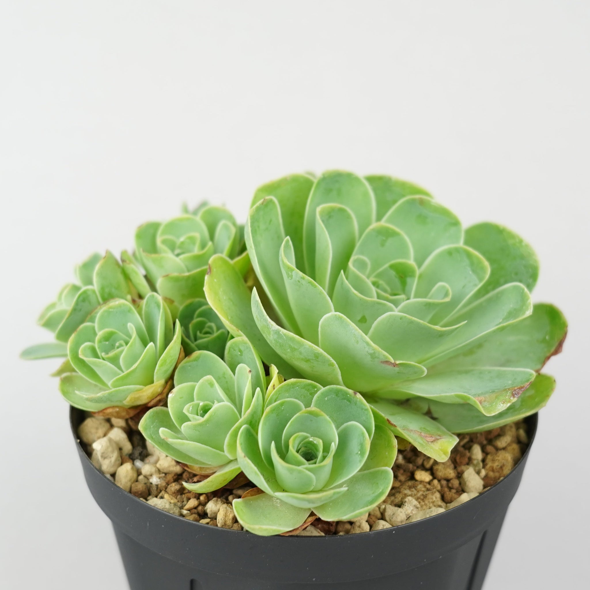 柔らかく重なる葉がまるで花弁のように展開し、“多肉の薔薇”と呼ばれるグリーノビアの中でも、特に可憐でロマンティックな品種として知られています。