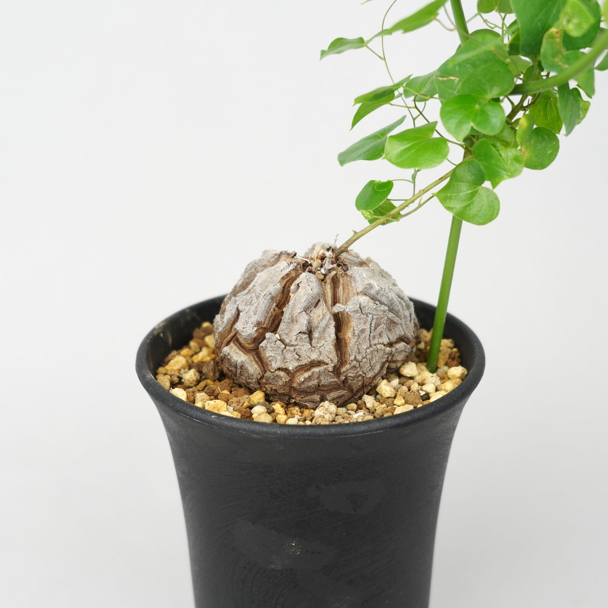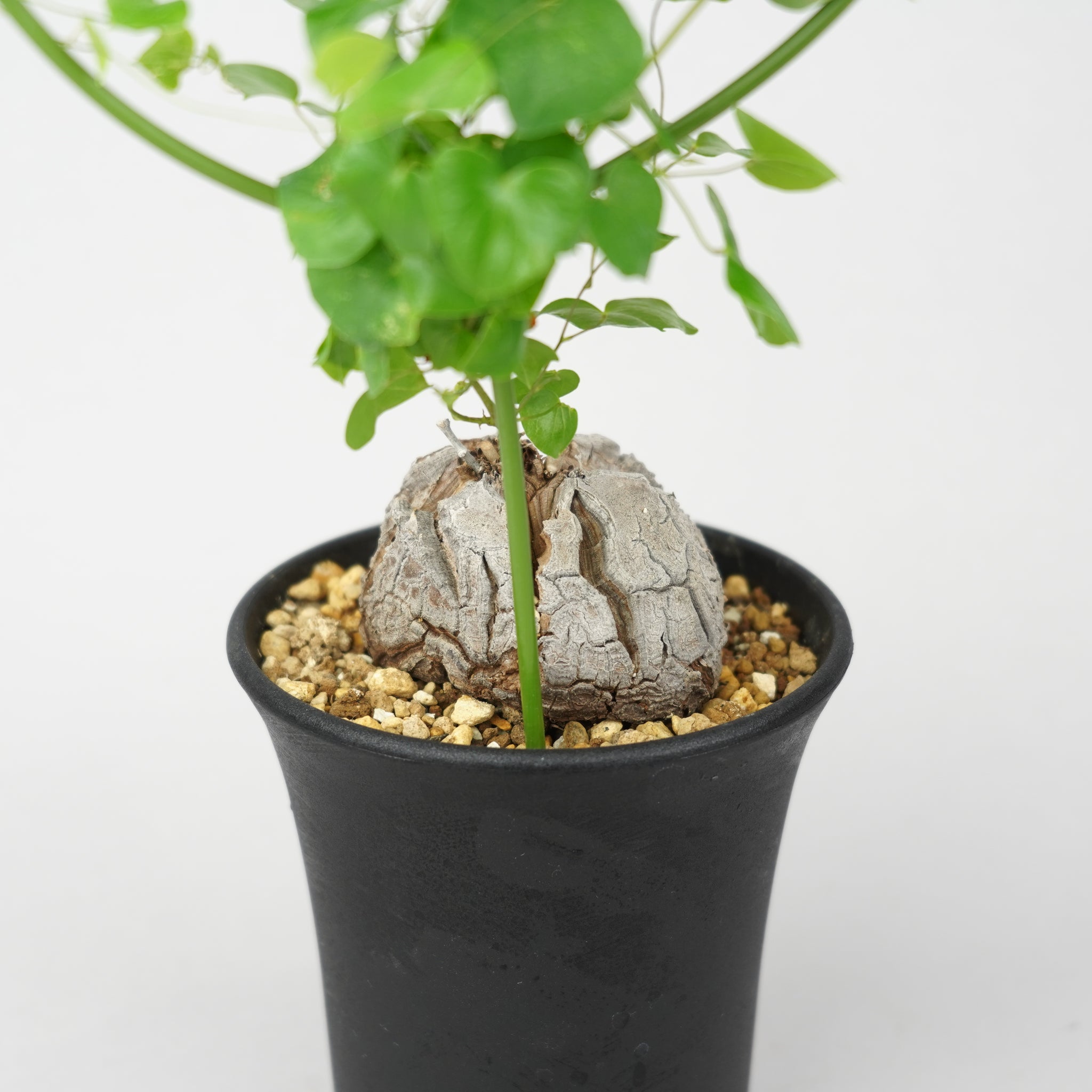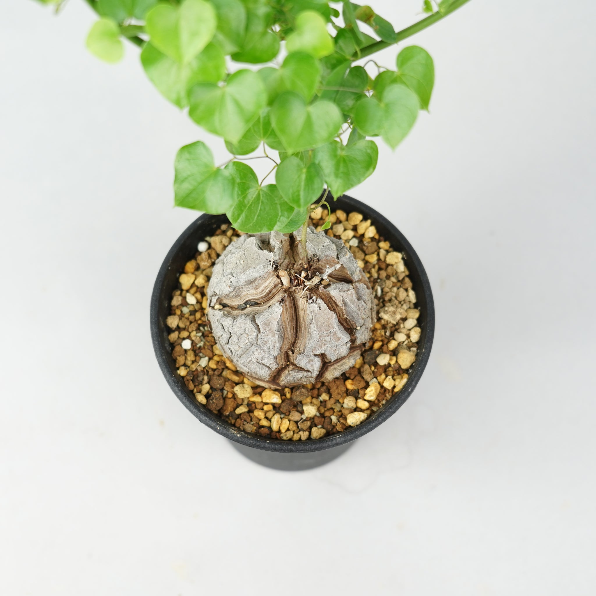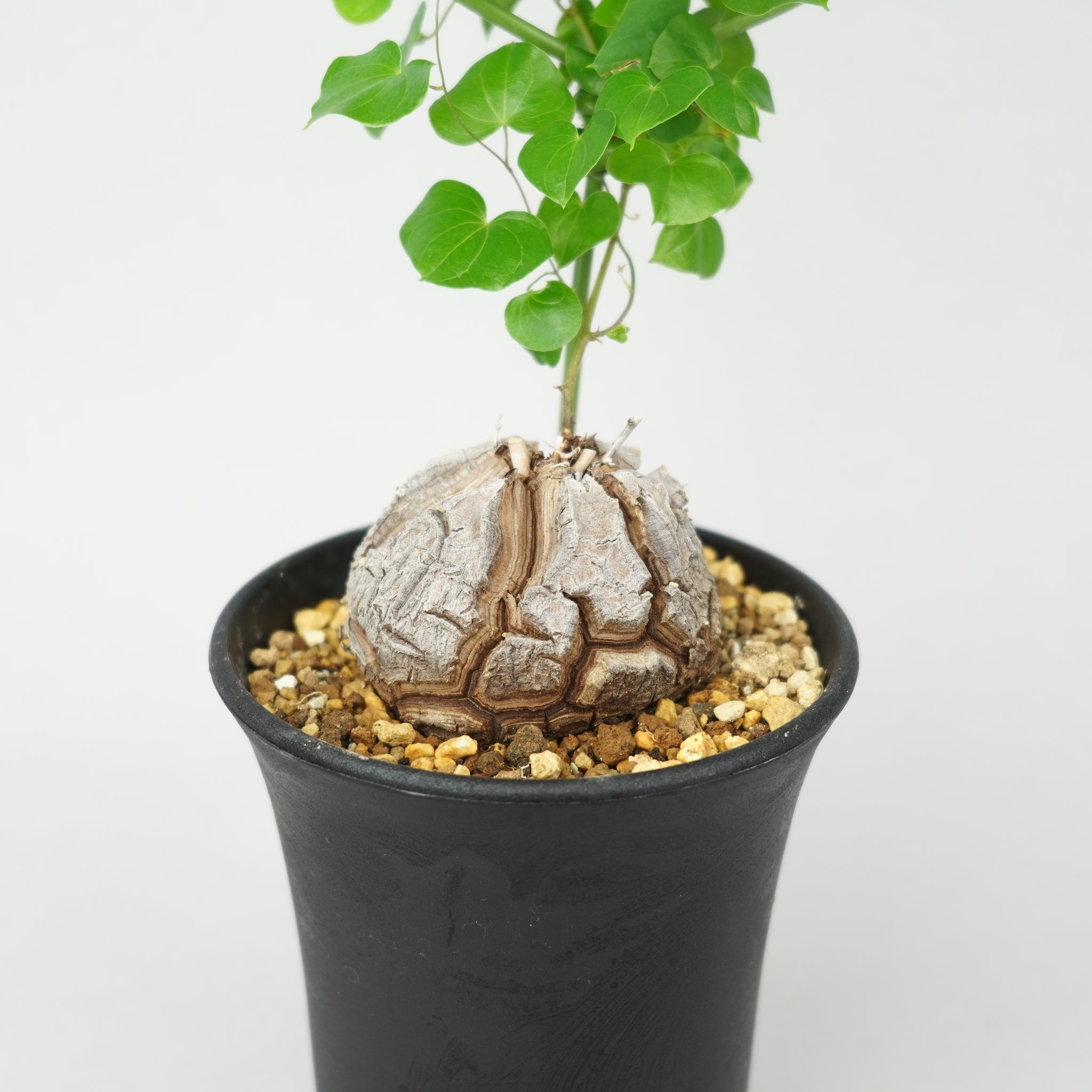 塊根から伸びるツル状の枝にはハート型の葉をつけ、その可憐なフォルムとの対比が独特の魅力を生み出します。