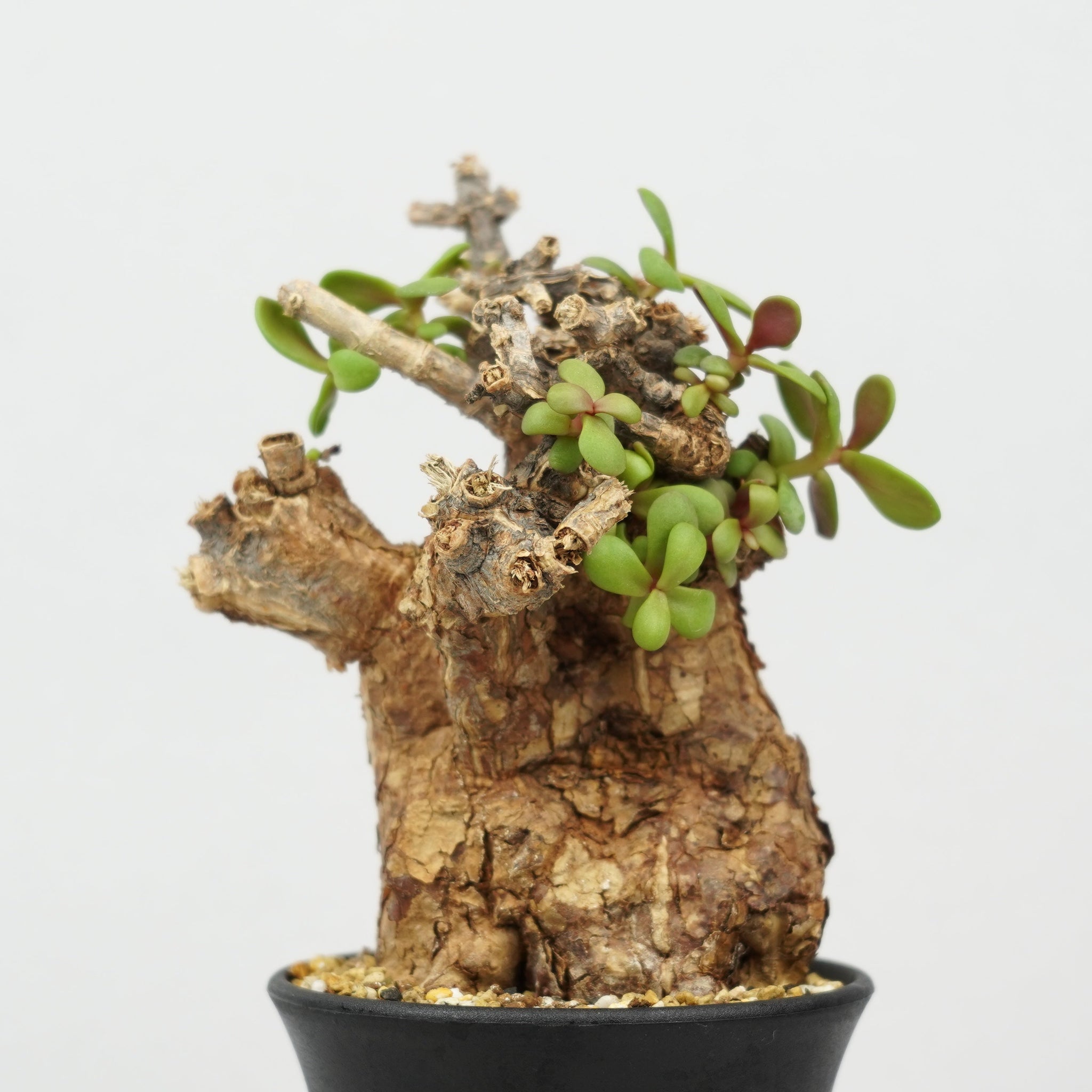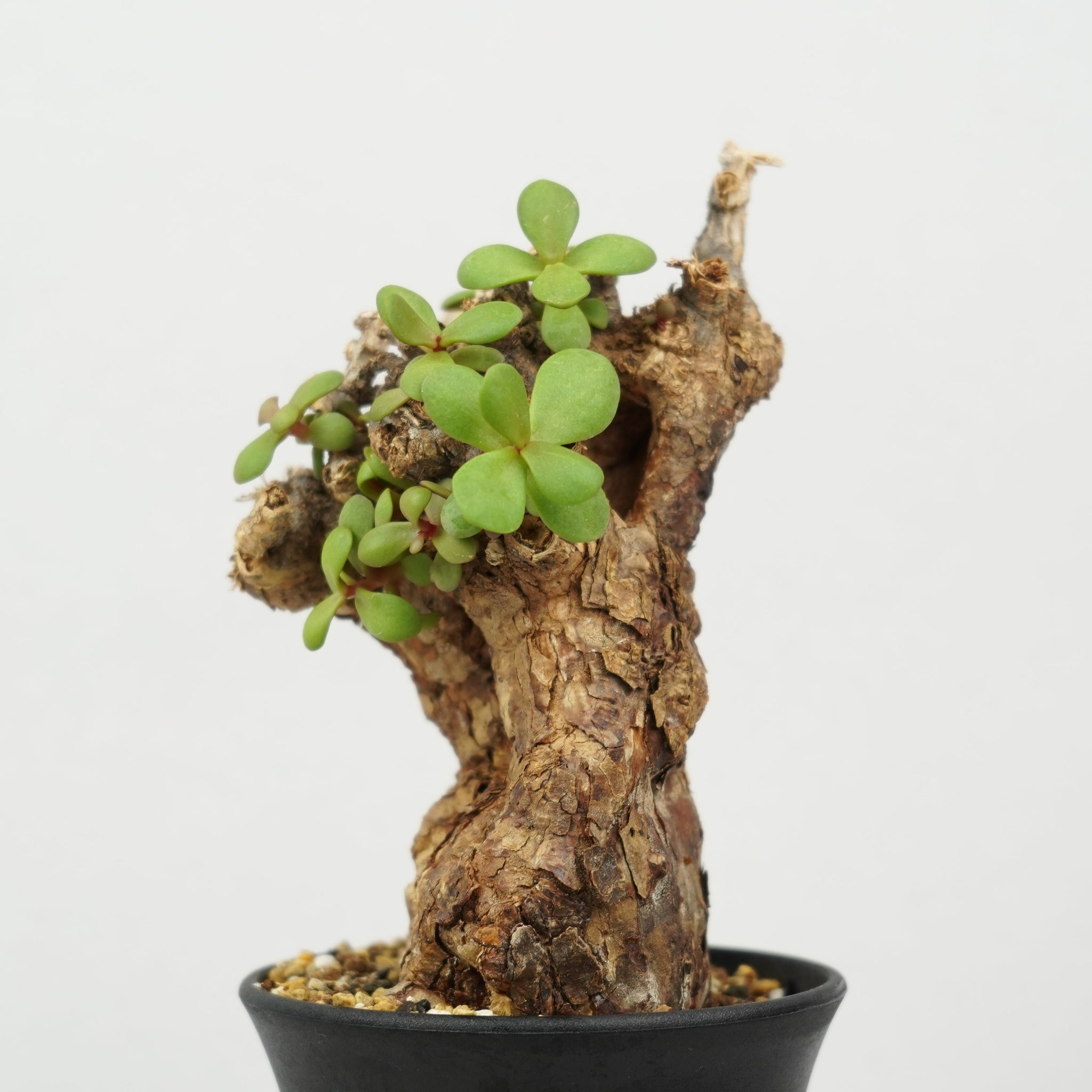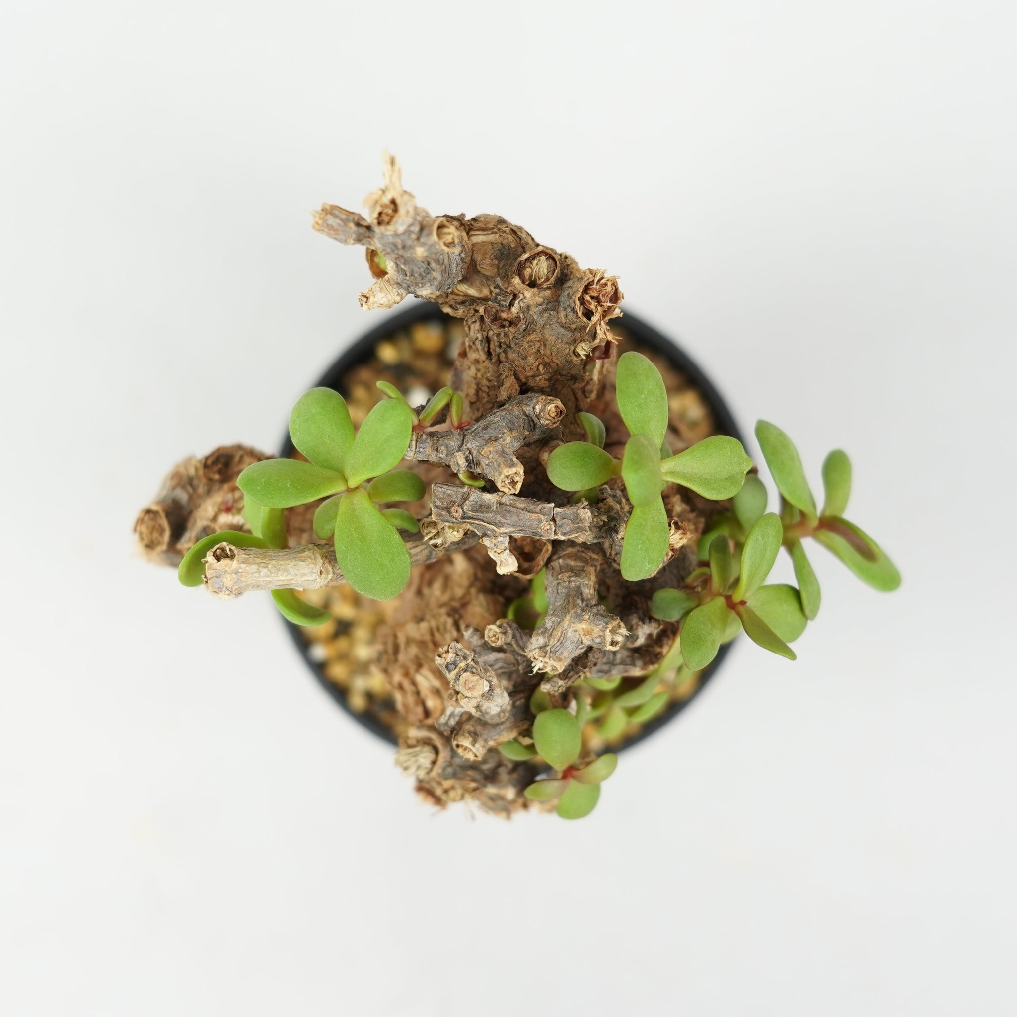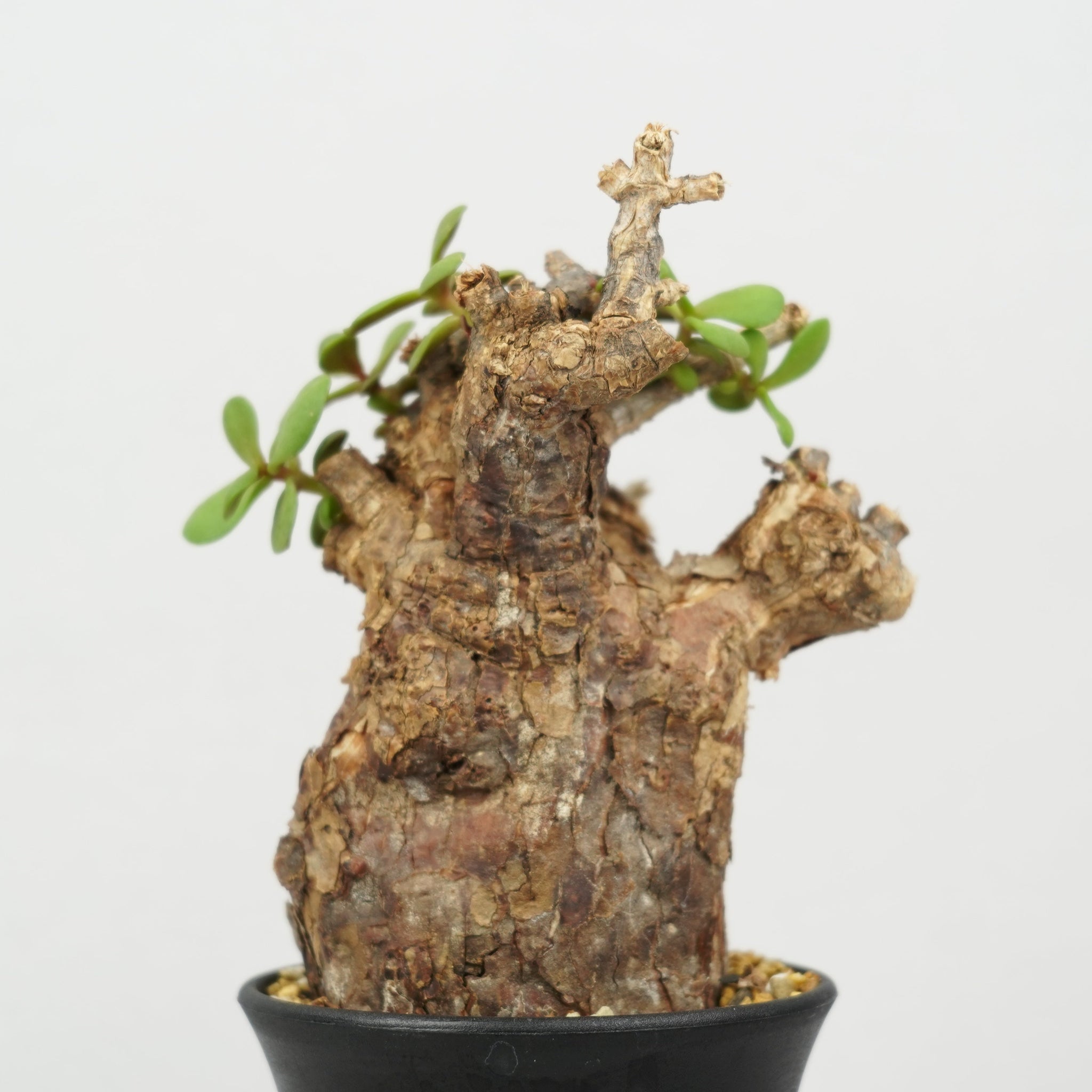 「ケラリア・ピグマエア」(Ceraria pygmaea)は、南アフリカの乾燥地に自生するスベリヒユ科の塊根植物です。地中に丸く膨らんだ塊根を持ち、そこから伸びる細枝には小さな多肉質の葉を密につけます。控えめな姿の中に独特の存在感があり、時を重ねるごとに造形の美しさが際立つコーデックスです。