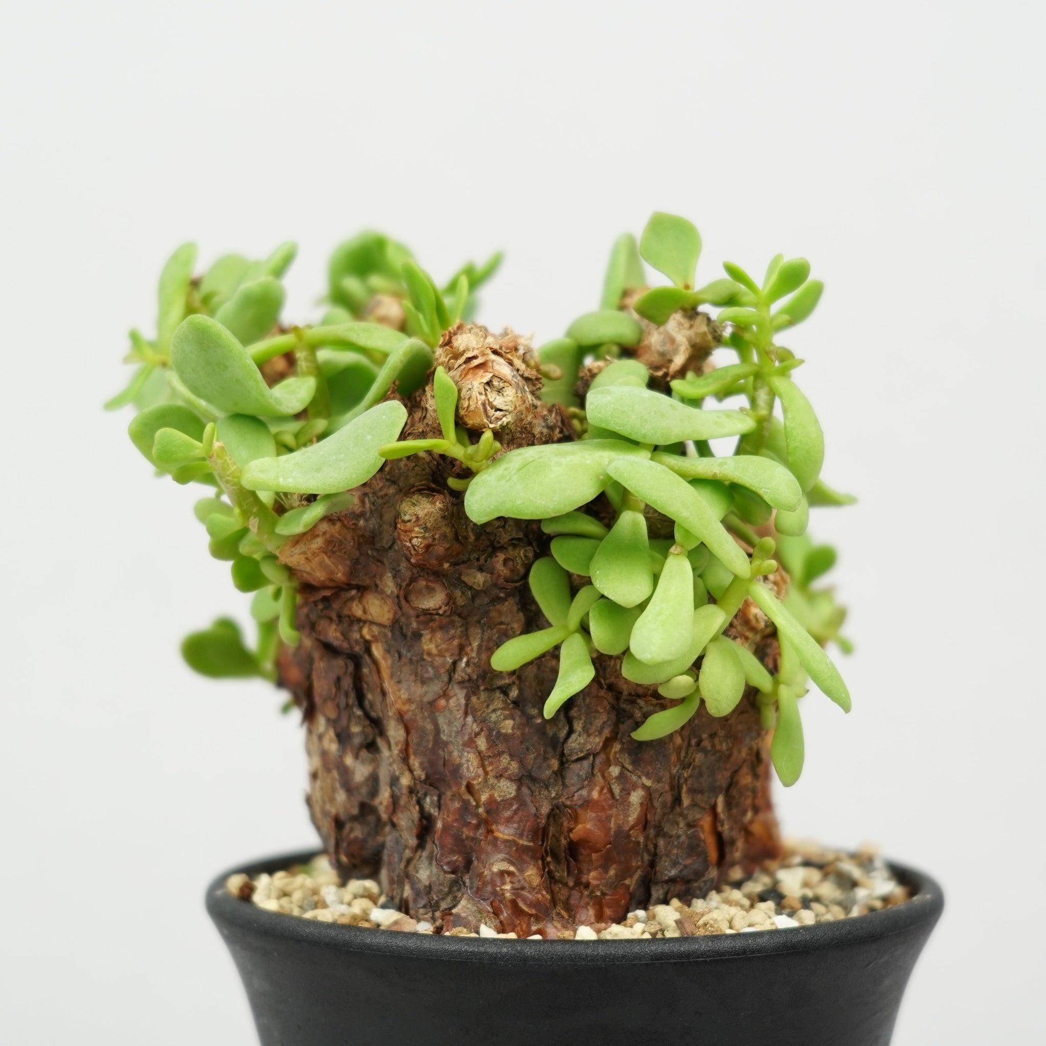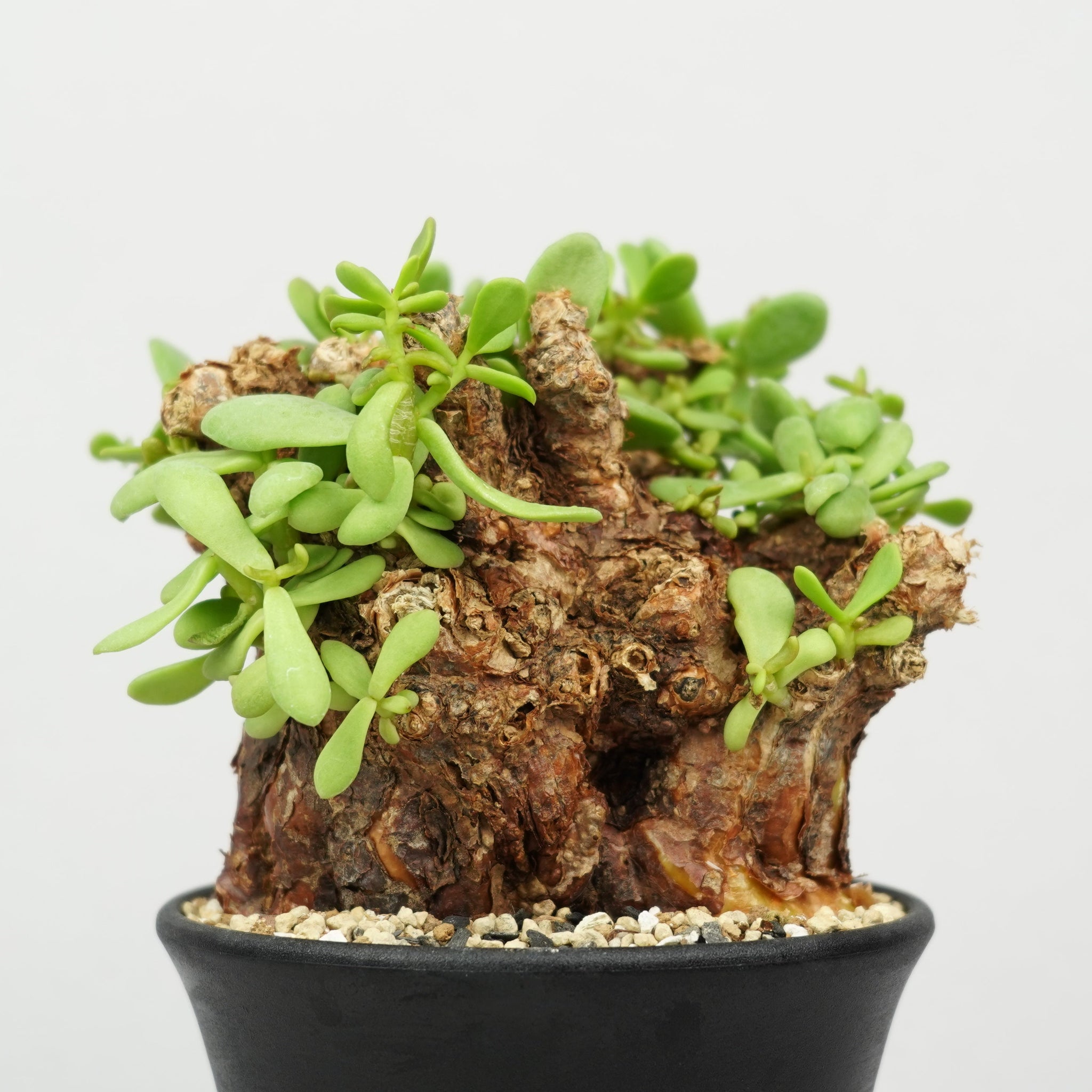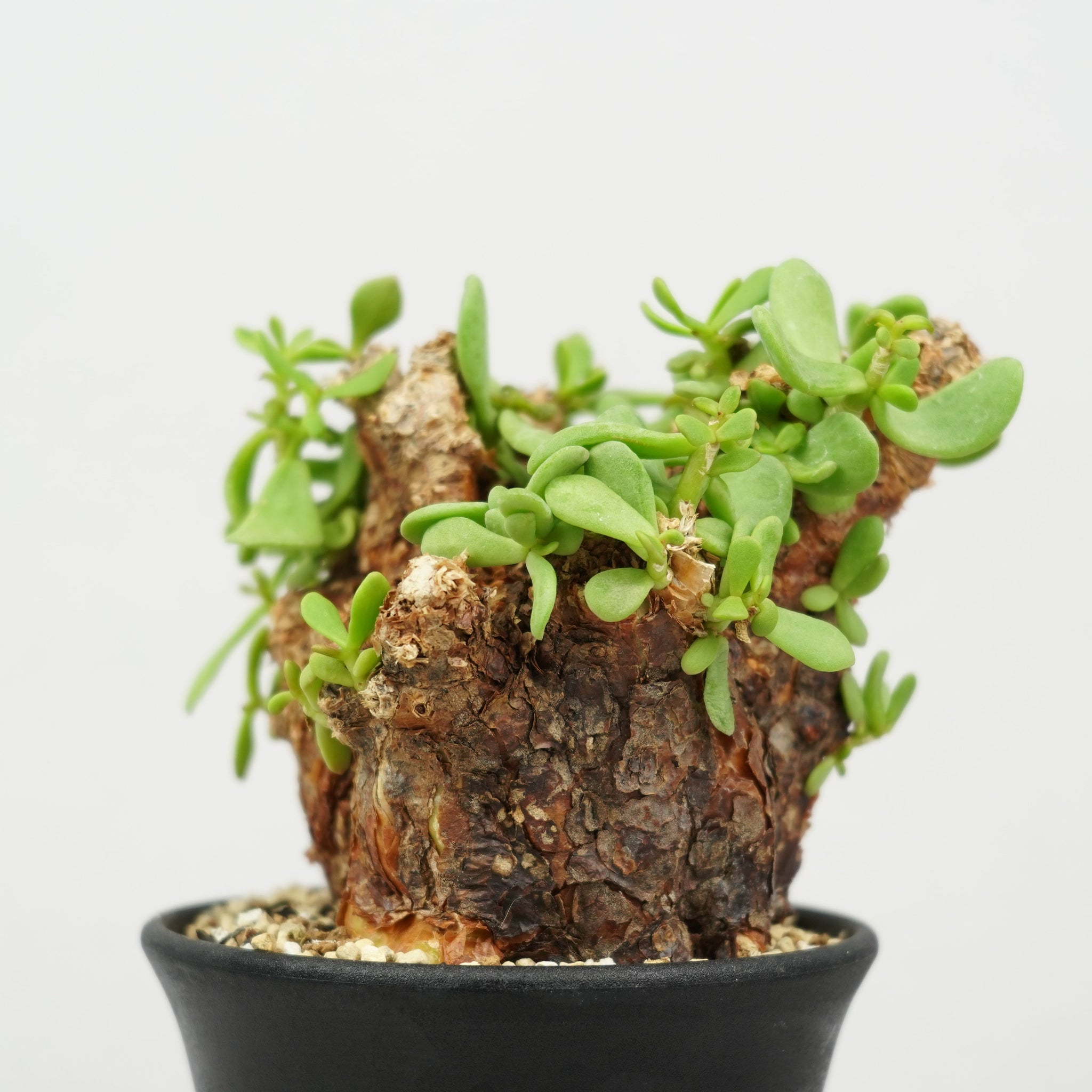 「ケラリア・ピグマエア」(Ceraria pygmaea)は、南アフリカの乾燥地に自生するスベリヒユ科の塊根植物です。地中に丸く膨らんだ塊根を持ち、そこから伸びる細枝には小さな多肉質の葉を密につけます。控えめな姿の中に独特の存在感があり、時を重ねるごとに造形の美しさが際立つコーデックスです。