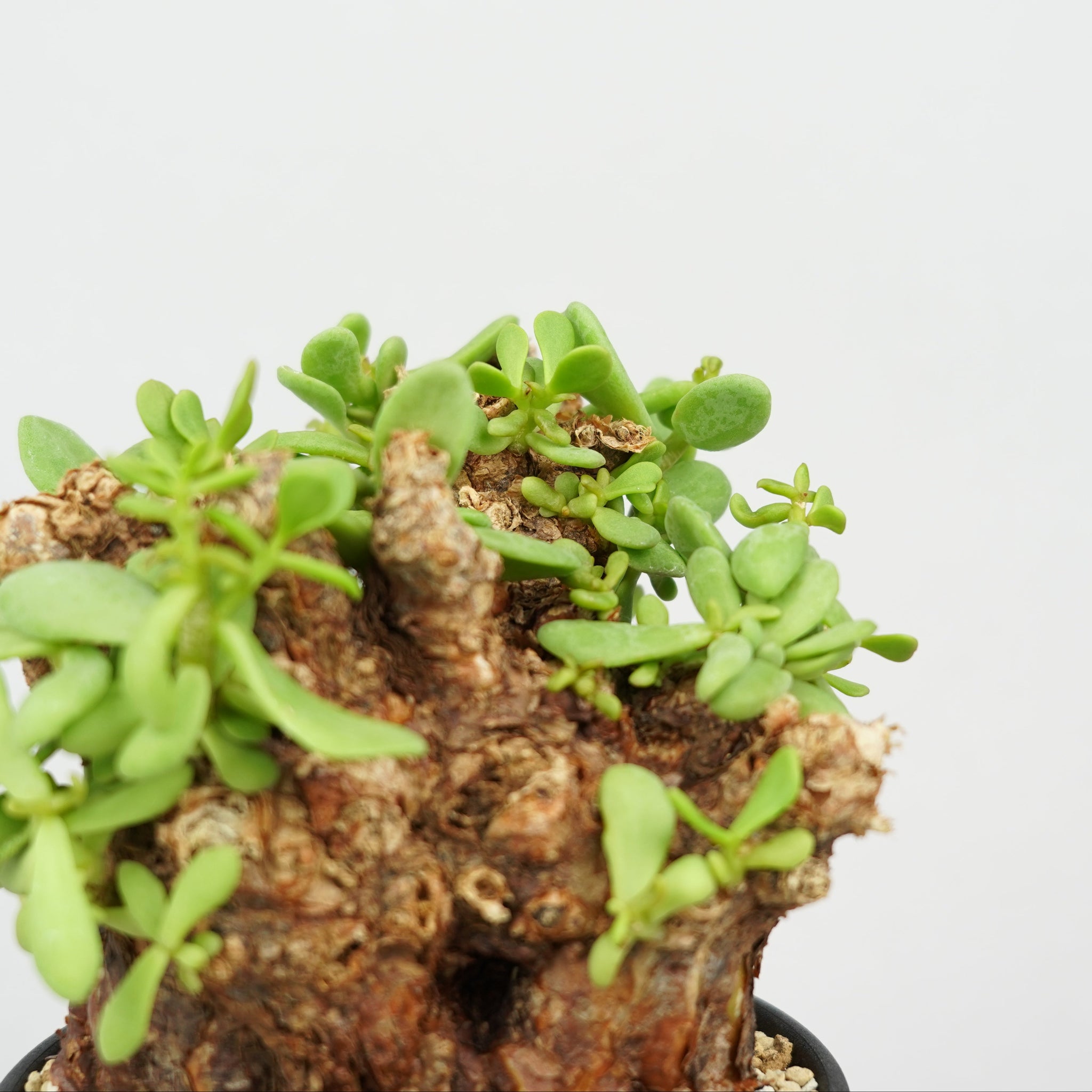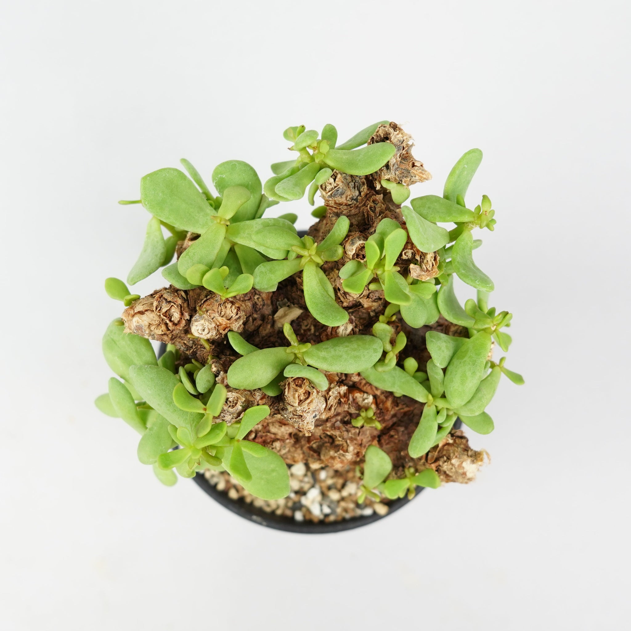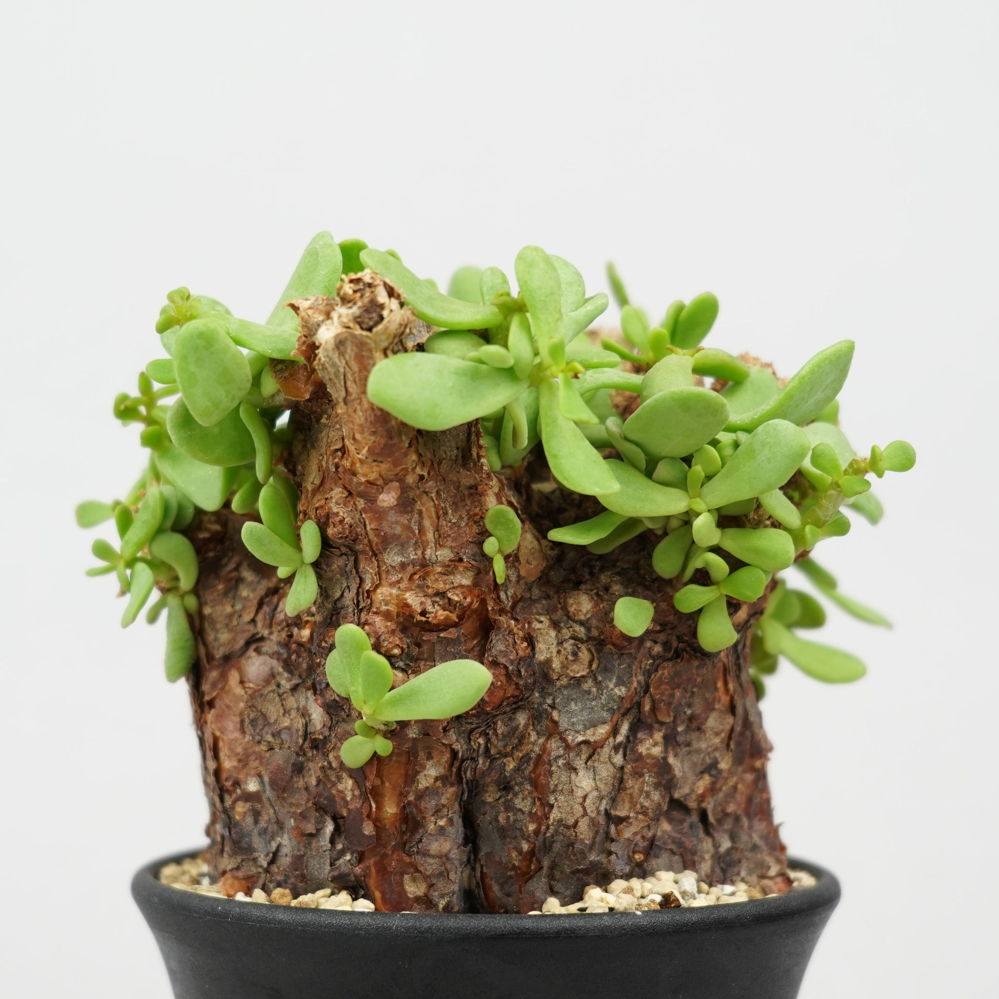 「ケラリア・ピグマエア」(Ceraria pygmaea)は、南アフリカの乾燥地に自生するスベリヒユ科の塊根植物です。地中に丸く膨らんだ塊根を持ち、そこから伸びる細枝には小さな多肉質の葉を密につけます。控えめな姿の中に独特の存在感があり、時を重ねるごとに造形の美しさが際立つコーデックスです。
