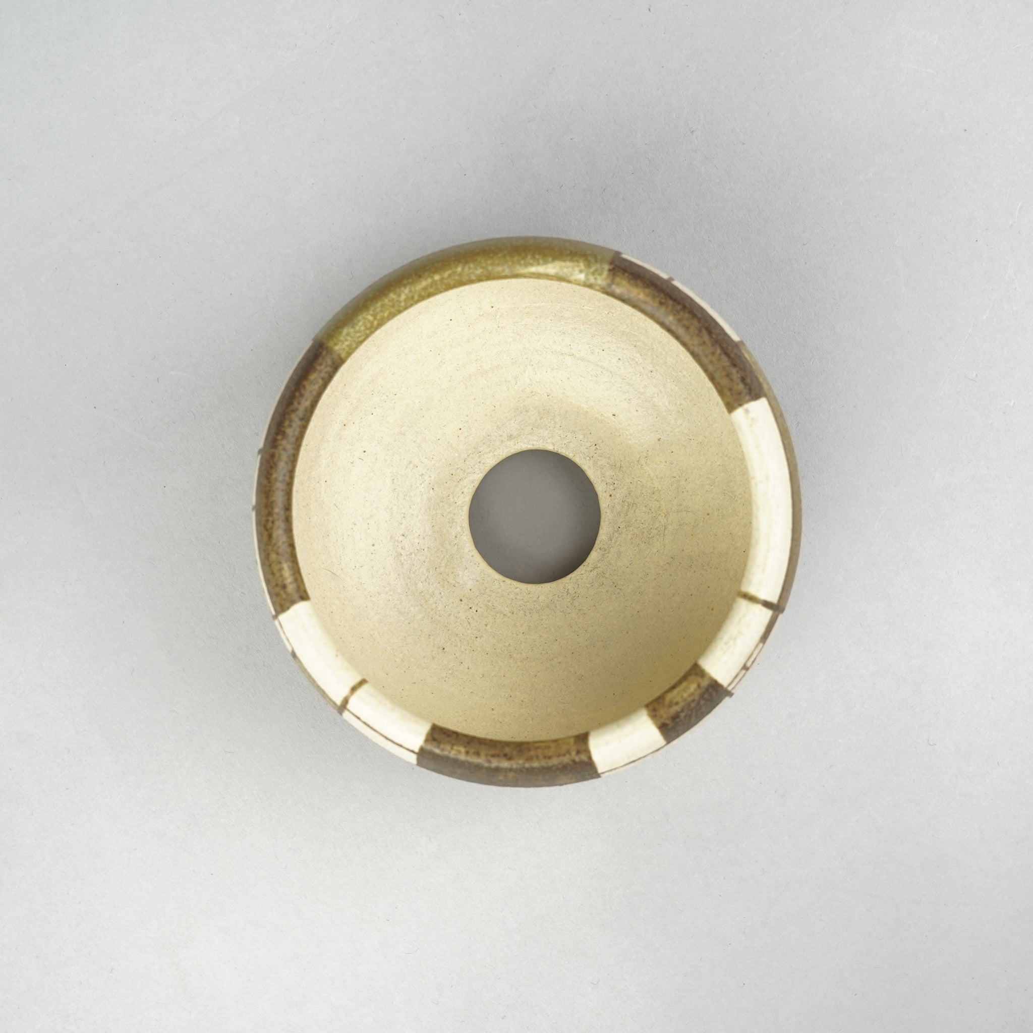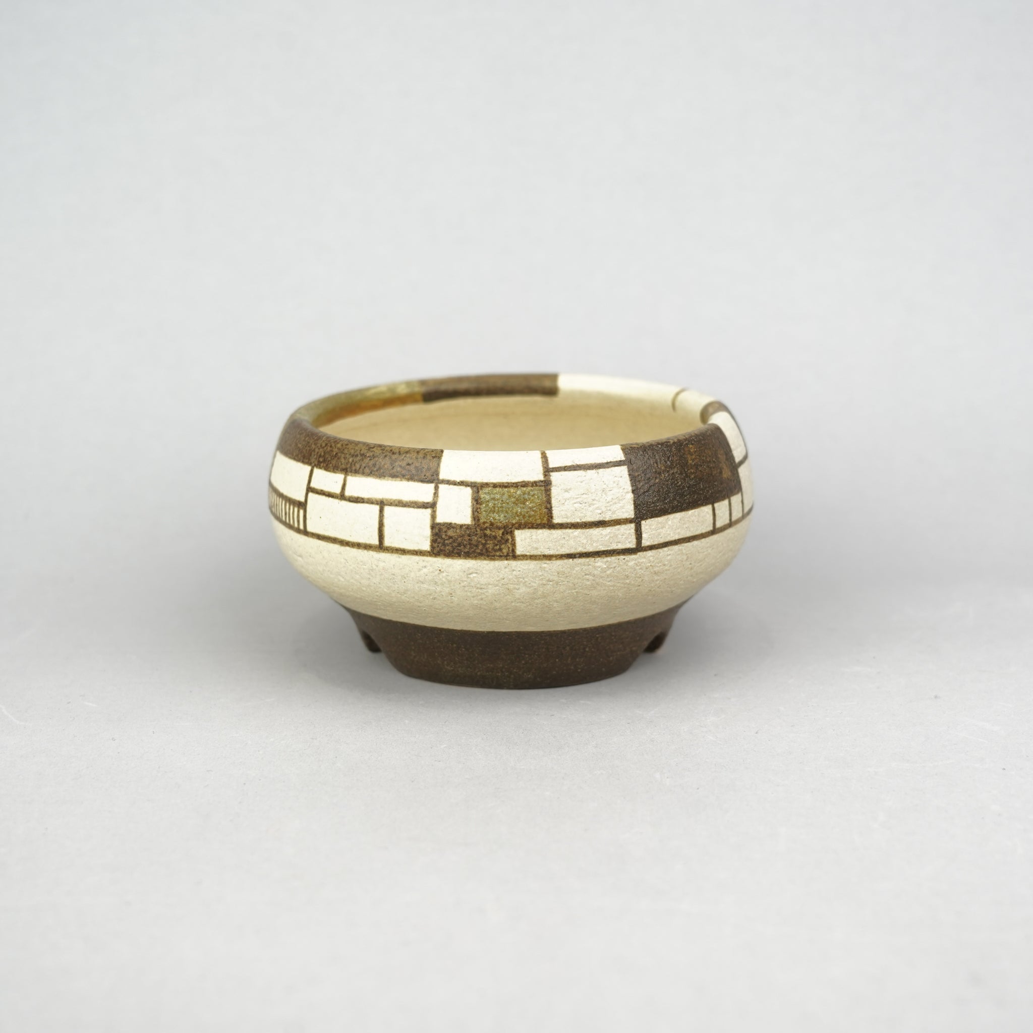 モンドリアンや寄木細工から着想を得て、「密×疎」をテーマに構成された植木鉢を制作。直線と面という最小限の要素で密度や面積のバランスを探り、複数の色が響き合うよう緻密に計算されたcompositionが特徴です。土の自然な風合いと構築的なデザインが対比し、まるで組木のように色のパーツが組まれているかのような錯覚を生み出します。ナチュラルなデザインで植物を植え替えるとより明るい印象になります。