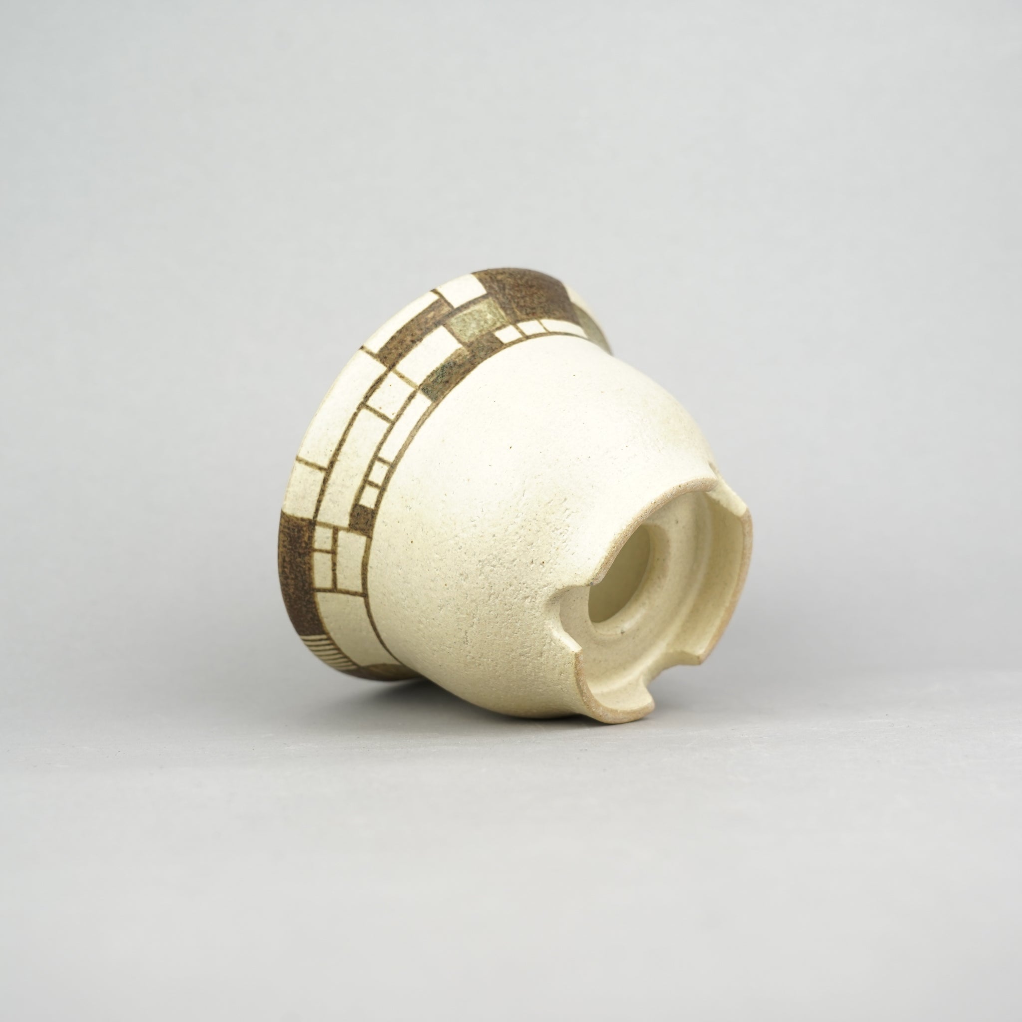 モンドリアンや寄木細工から着想を得て、「密×疎」をテーマに構成された植木鉢を制作。直線と面という最小限の要素で密度や面積のバランスを探り、複数の色が響き合うよう緻密に計算されたcompositionが特徴です。土の自然な風合いと構築的なデザインが対比し、まるで組木のように色のパーツが組まれているかのような錯覚を生み出します。ナチュラルなデザインで植物を植え替えるとより明るい印象になります。