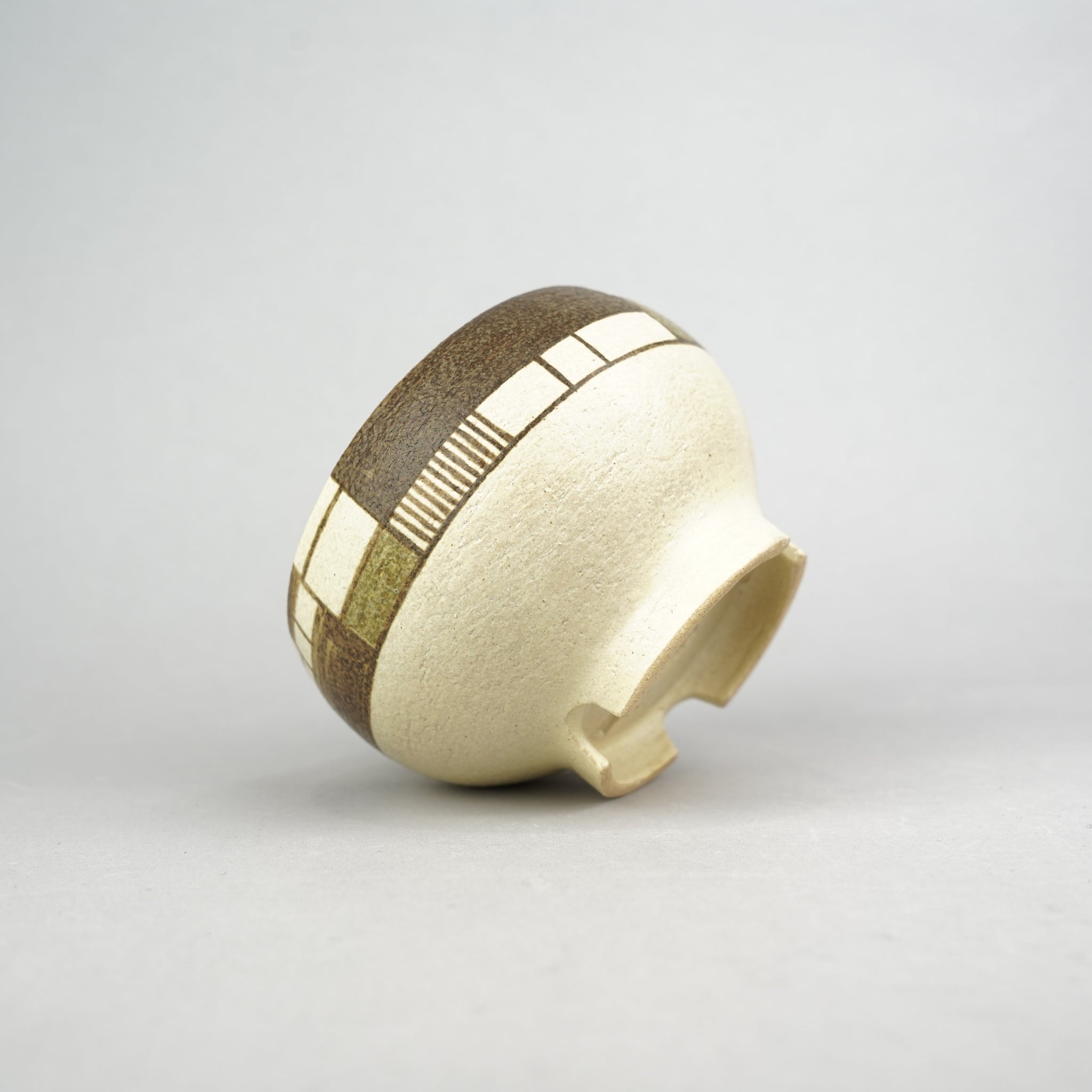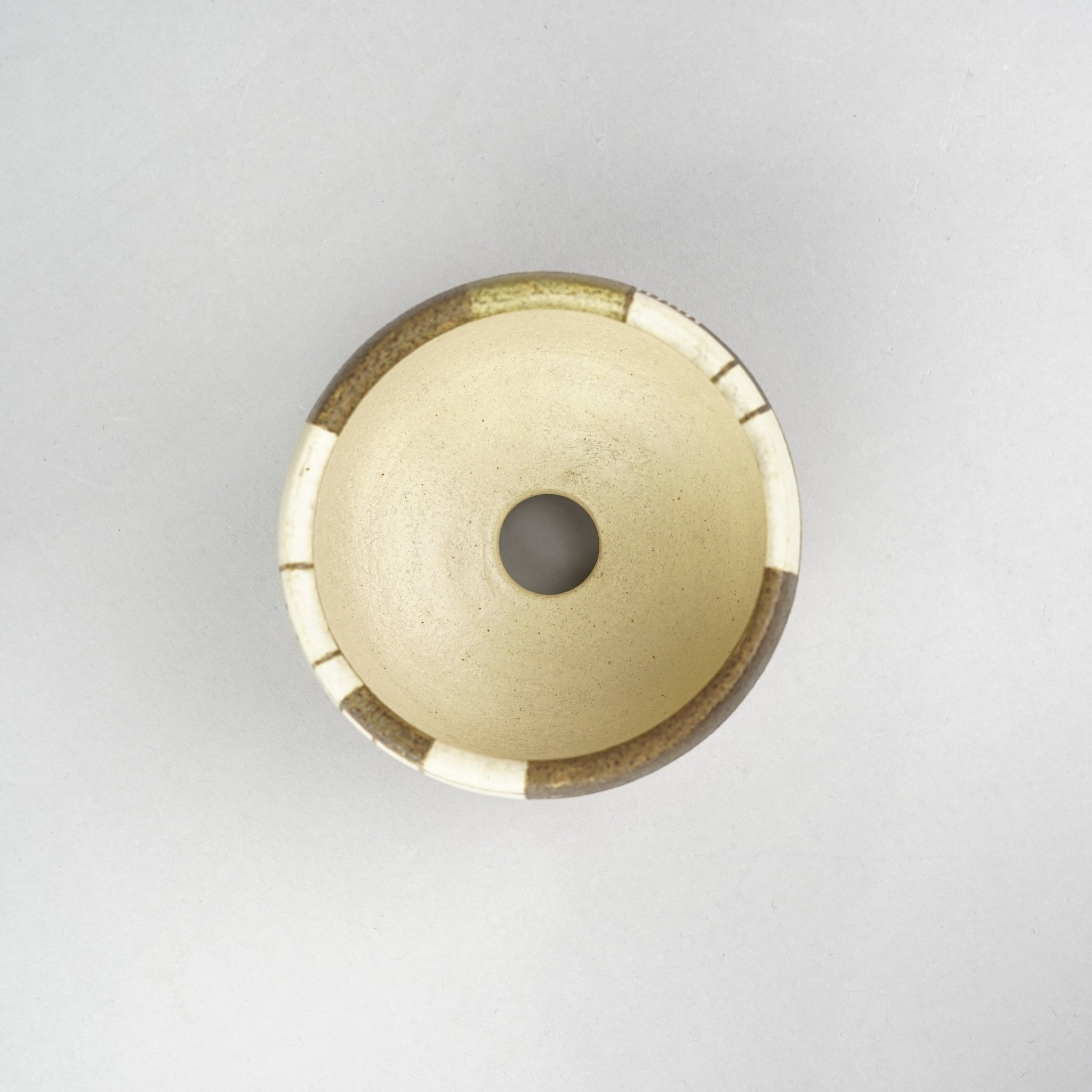 モンドリアンや寄木細工から着想を得て、「密×疎」をテーマに構成された植木鉢を制作。直線と面という最小限の要素で密度や面積のバランスを探り、複数の色が響き合うよう緻密に計算されたcompositionが特徴です。土の自然な風合いと構築的なデザインが対比し、まるで組木のように色のパーツが組まれているかのような錯覚を生み出します。ナチュラルなデザインで植物を植え替えるとより明るい印象になります。