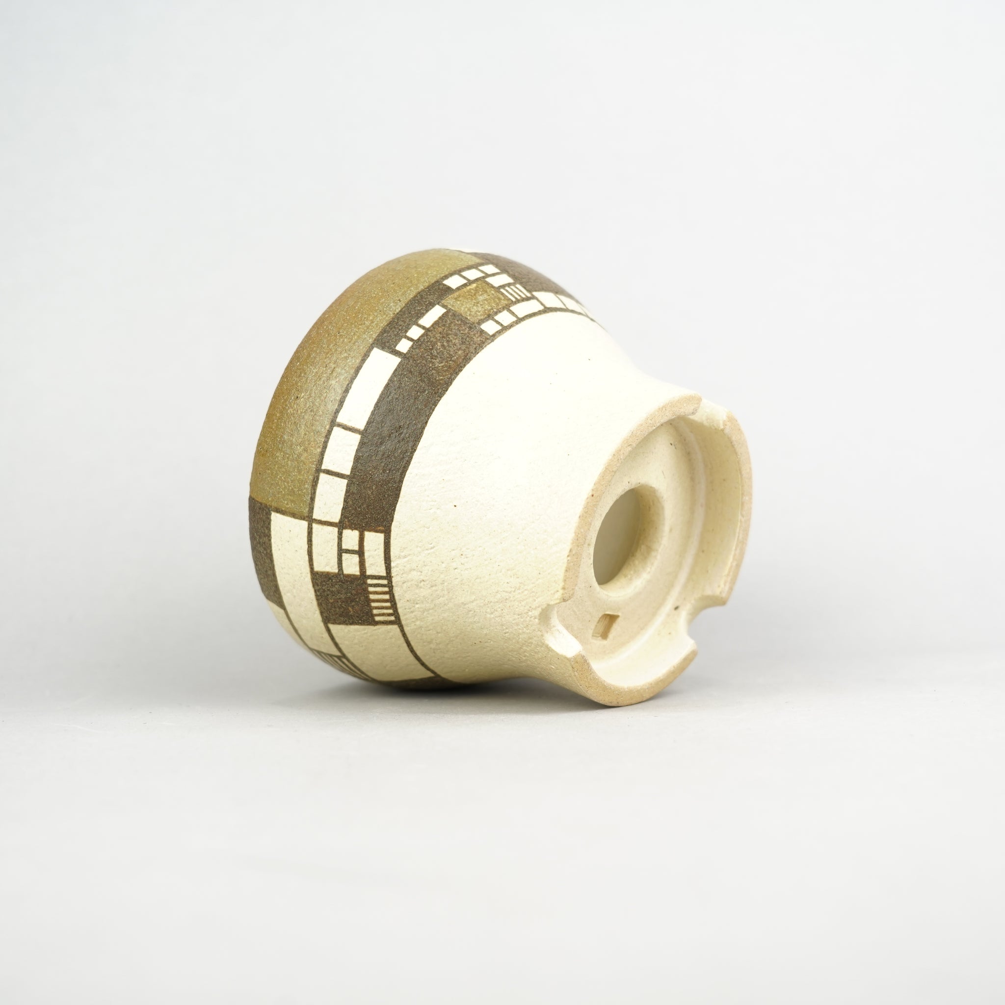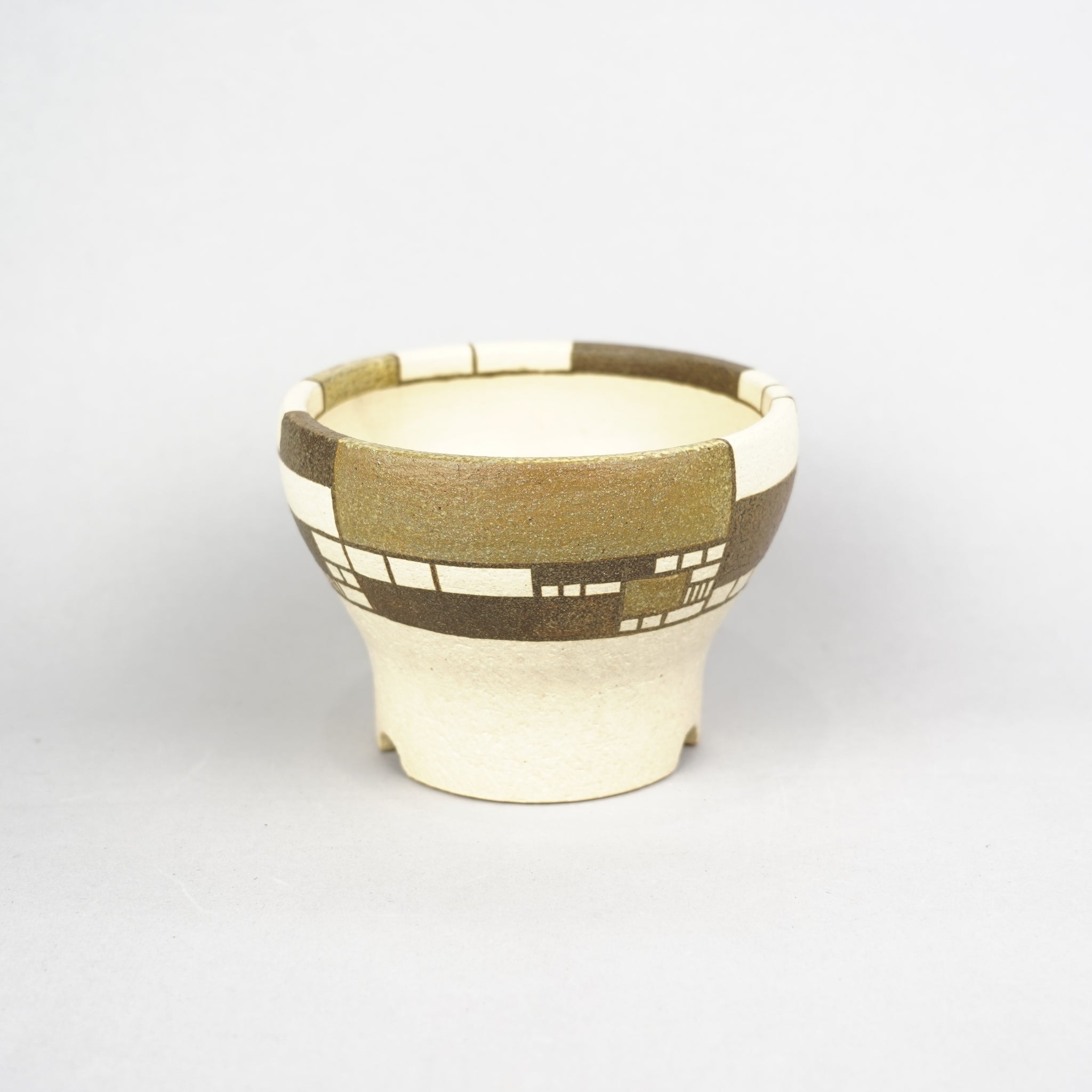モンドリアンや寄木細工から着想を得て、「密×疎」をテーマに構成された植木鉢を制作。直線と面という最小限の要素で密度や面積のバランスを探り、複数の色が響き合うよう緻密に計算されたcompositionが特徴です。土の自然な風合いと構築的なデザインが対比し、まるで組木のように色のパーツが組まれているかのような錯覚を生み出します。ナチュラルなデザインで植物を植え替えるとより明るい印象になります。