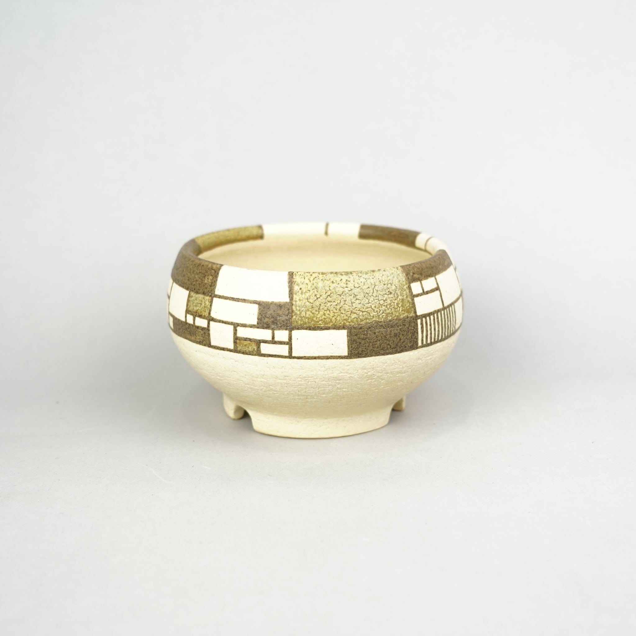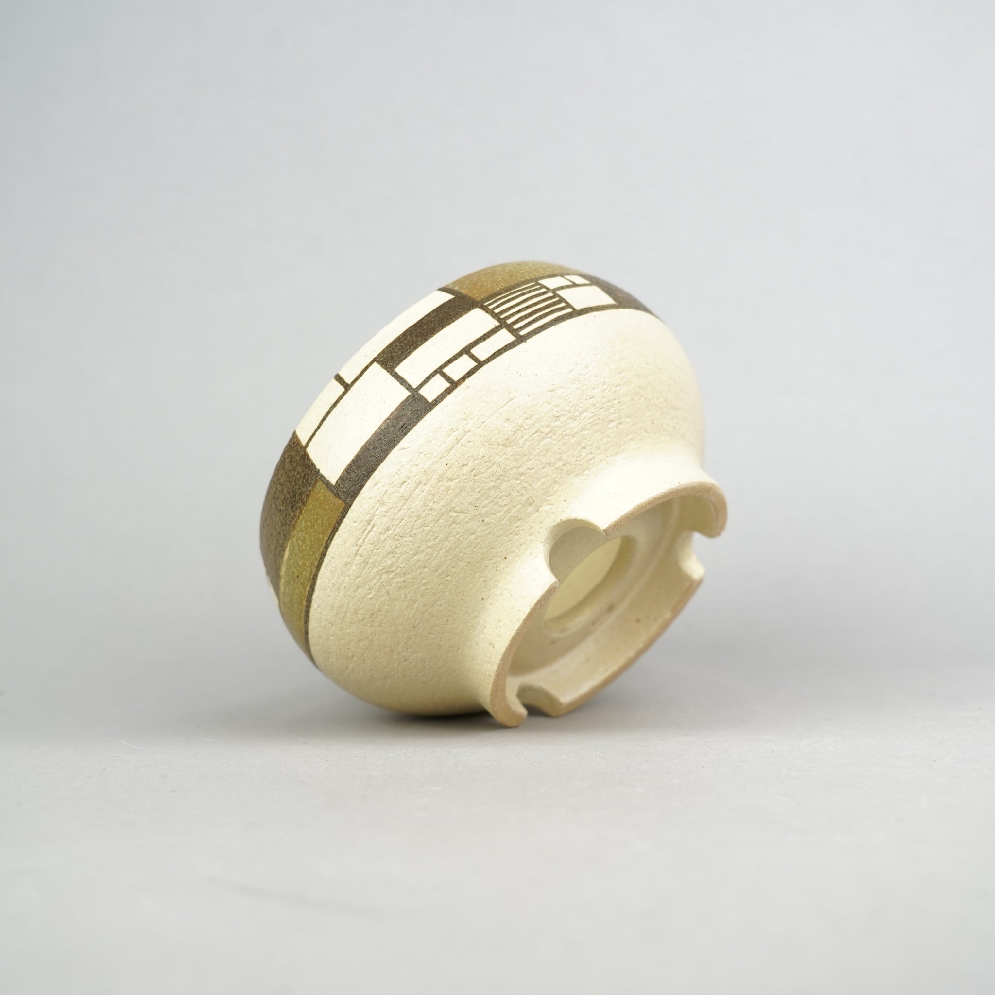 モンドリアンや寄木細工から着想を得て、「密×疎」をテーマに構成された植木鉢を制作。直線と面という最小限の要素で密度や面積のバランスを探り、複数の色が響き合うよう緻密に計算されたcompositionが特徴です。土の自然な風合いと構築的なデザインが対比し、まるで組木のように色のパーツが組まれているかのような錯覚を生み出します。ナチュラルなデザインで植物を植え替えるとより明るい印象になります。