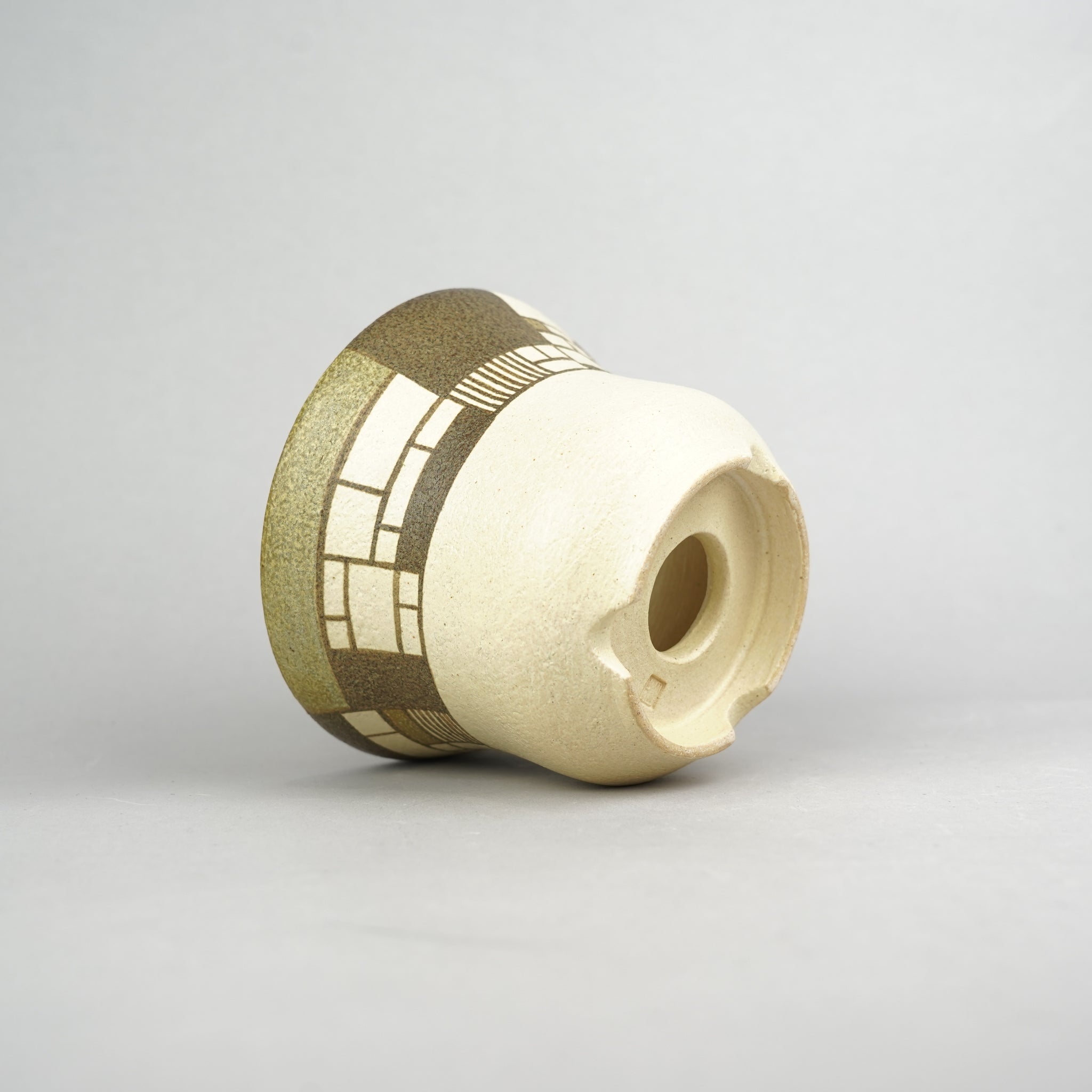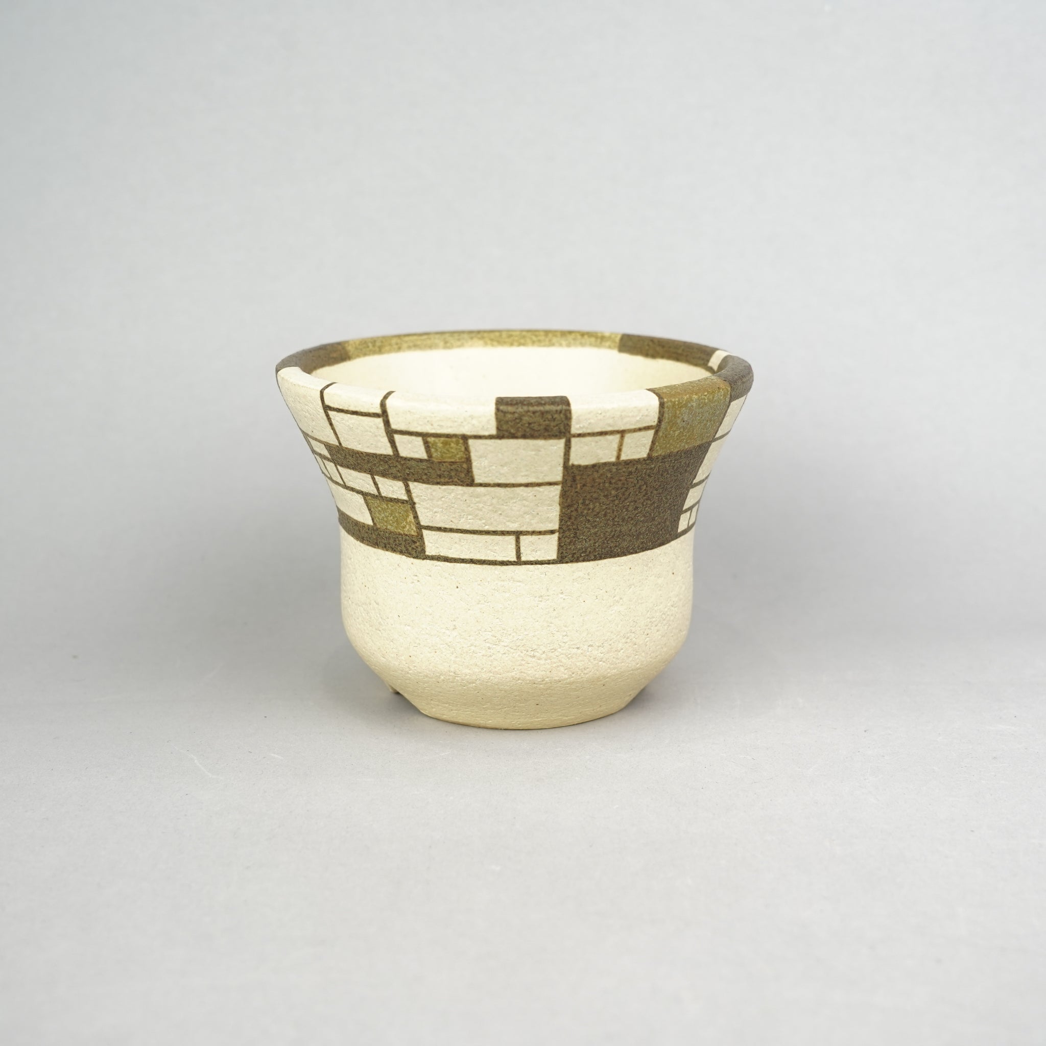 モンドリアンや寄木細工から着想を得て、「密×疎」をテーマに構成された植木鉢を制作。直線と面という最小限の要素で密度や面積のバランスを探り、複数の色が響き合うよう緻密に計算されたcompositionが特徴です。土の自然な風合いと構築的なデザインが対比し、まるで組木のように色のパーツが組まれているかのような錯覚を生み出します。ナチュラルなデザインで植物を植え替えるとより明るい印象になります。