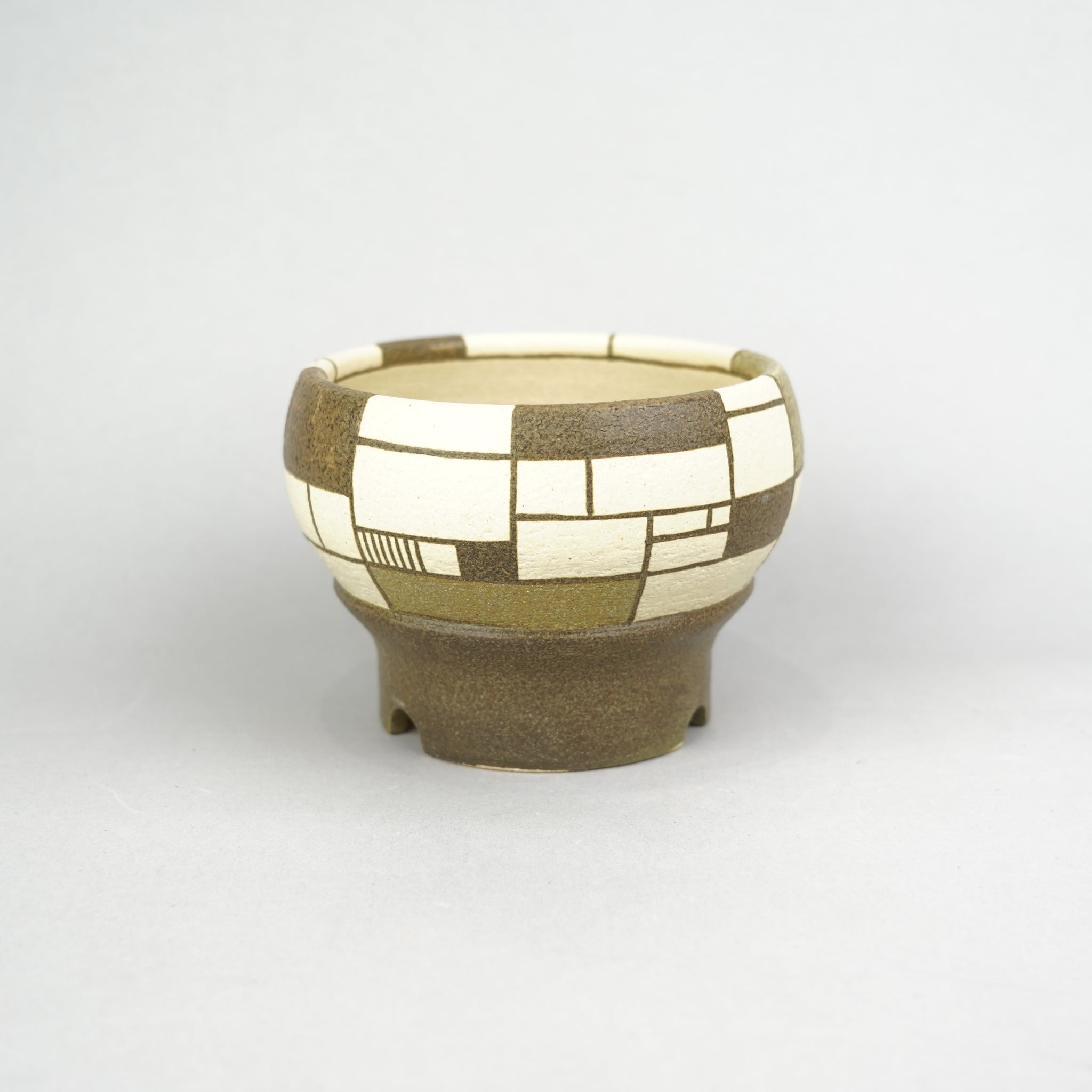 モンドリアンや寄木細工から着想を得て、「密×疎」をテーマに構成された植木鉢を制作。直線と面という最小限の要素で密度や面積のバランスを探り、複数の色が響き合うよう緻密に計算されたcompositionが特徴です。土の自然な風合いと構築的なデザインが対比し、まるで組木のように色のパーツが組まれているかのような錯覚を生み出します。ナチュラルなデザインで植物を植え替えるとより明るい印象になります。