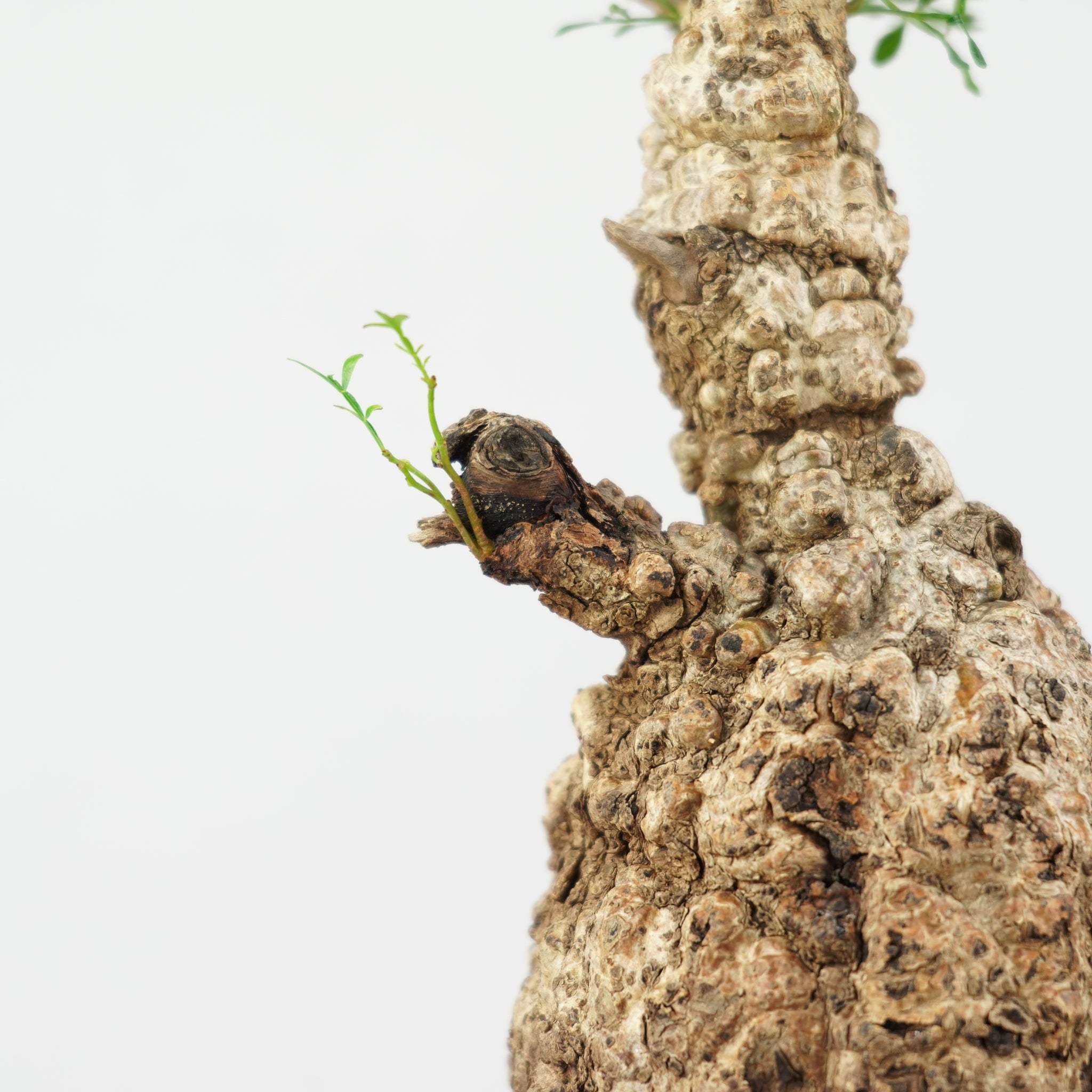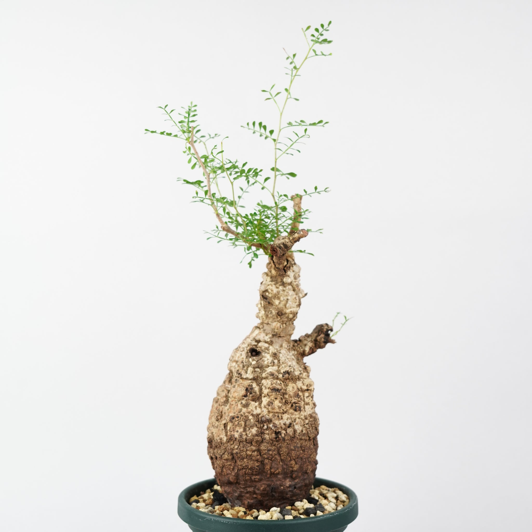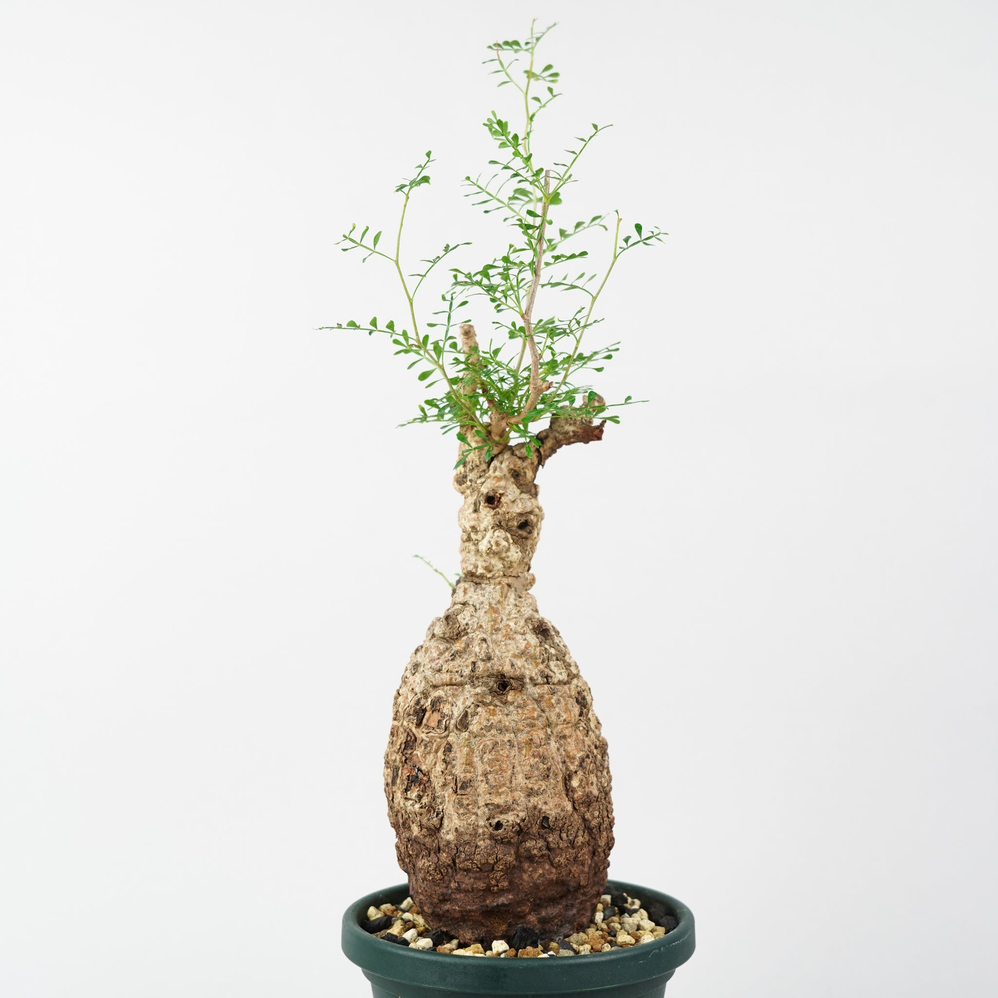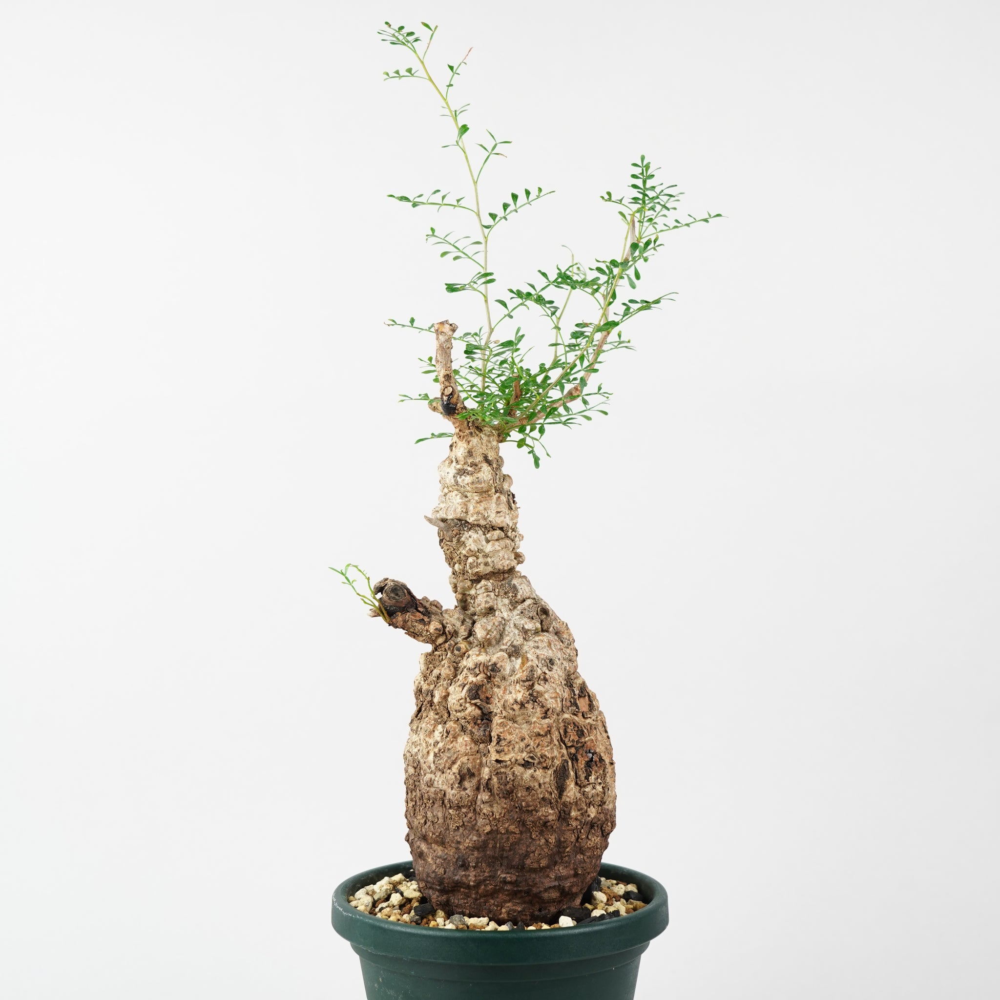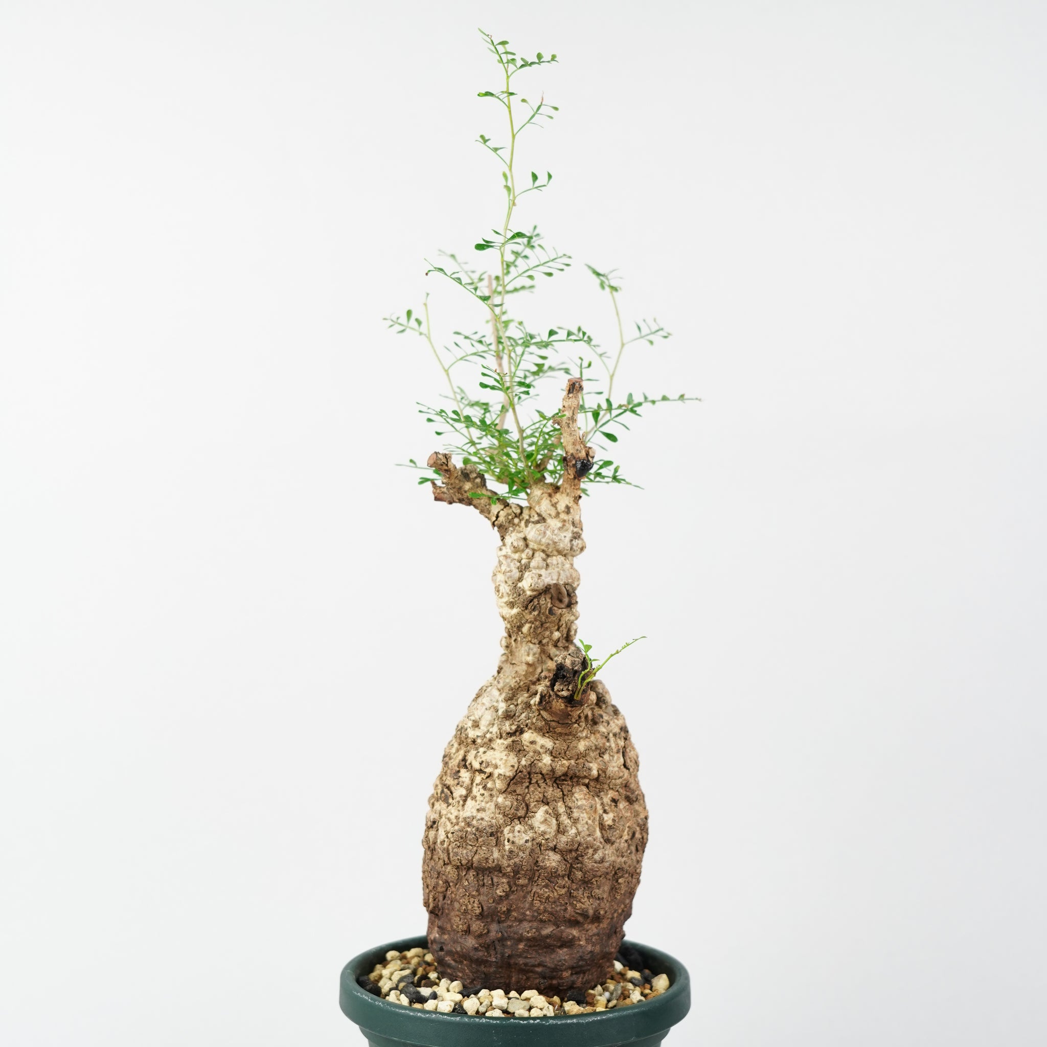 太く力強い幹と、そこから繊細に伸びる枝葉のコントラストが美しく、「塊根植物の王様」とも称される存在です。