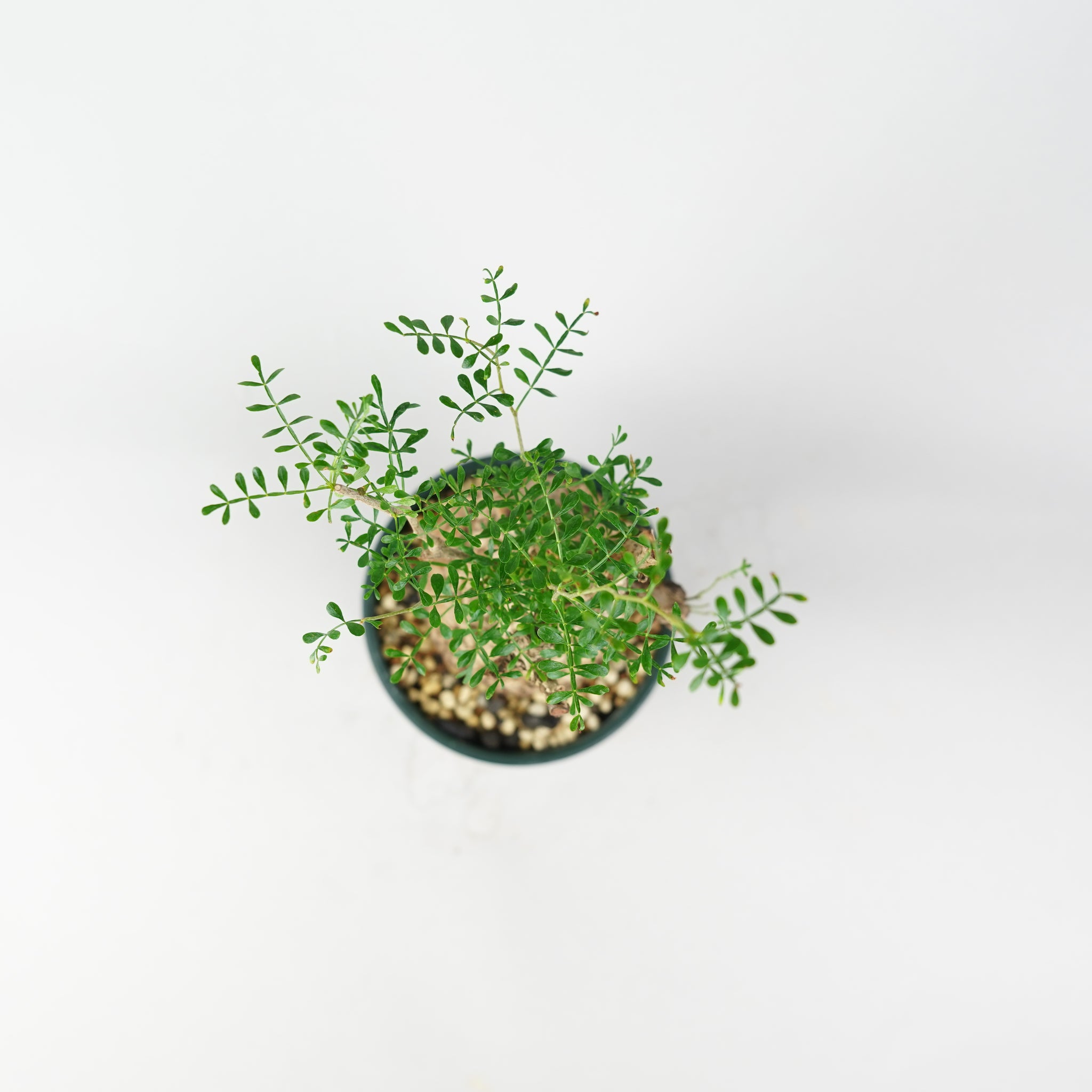 「オペルクリカリア・パキプス」(Operculicarya pachypus) は、マダガスカル原産のウルシ科に属する希少な塊根植物です。太く力強い幹と、そこから繊細に伸びる枝葉のコントラストが美しく、コーデックスの王様とも呼ばれる存在です。