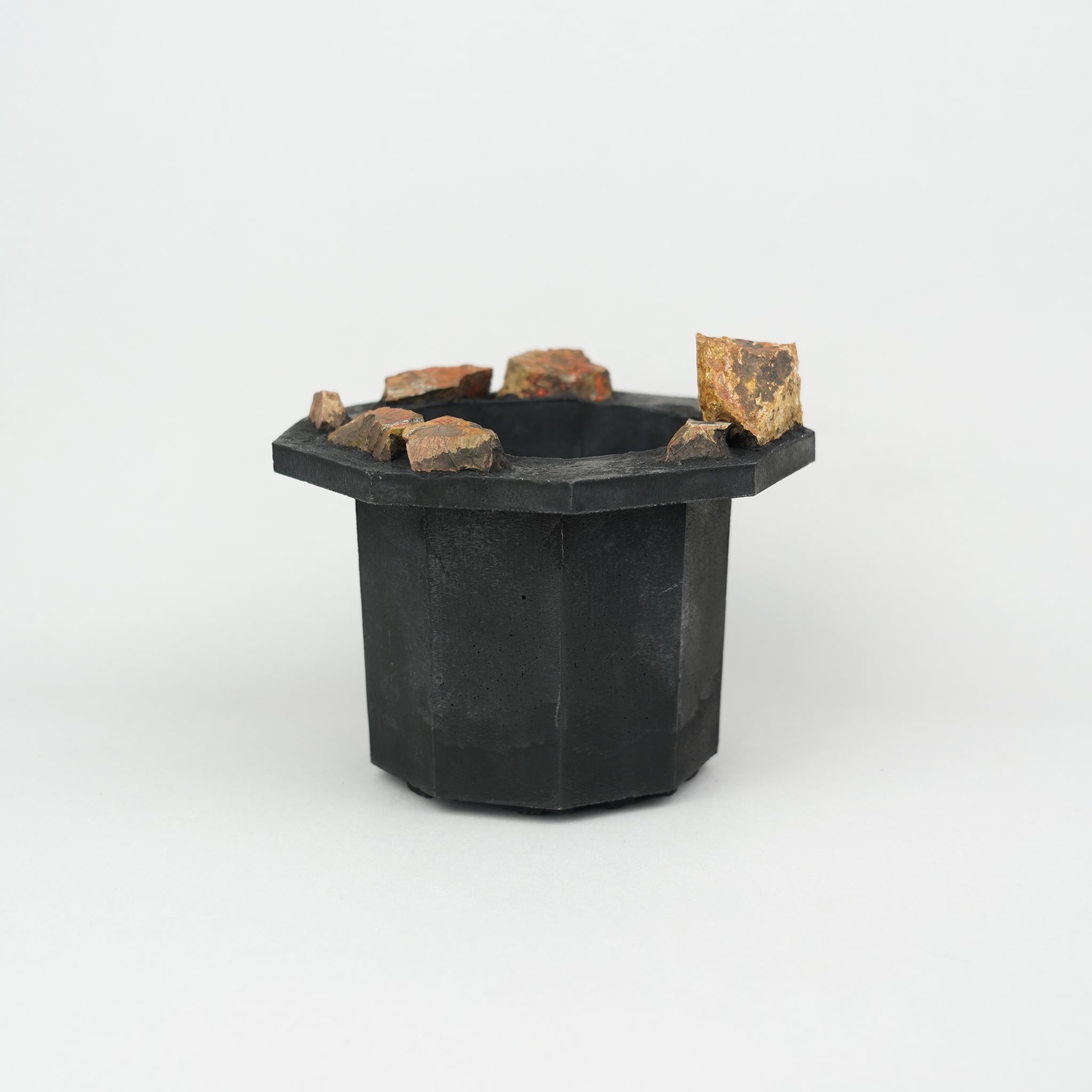 通気性や排水性、植え替えやすさも考慮して鉢を作っています。九角形の形をベースに植物や建築、サブカルチャーの要素を取り入れ個性的な鉢に仕上げています。